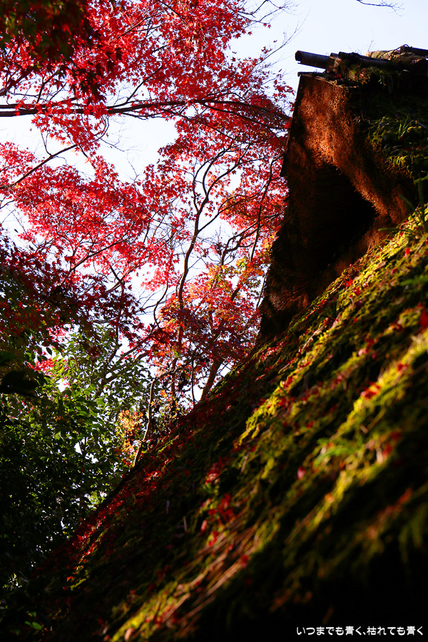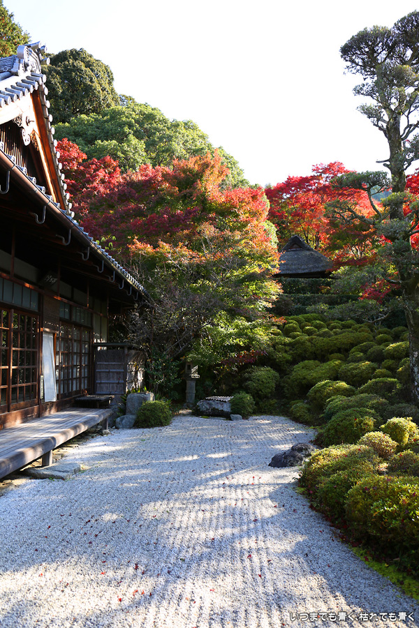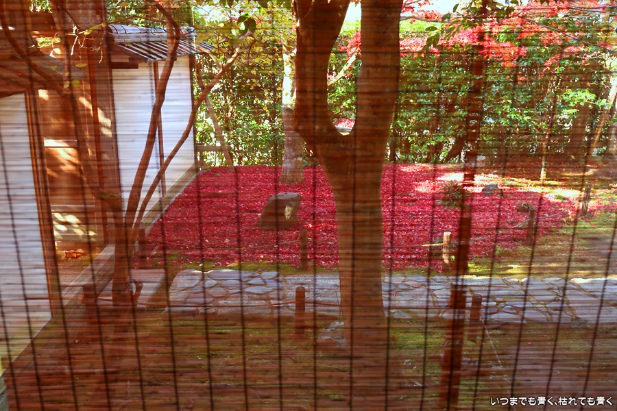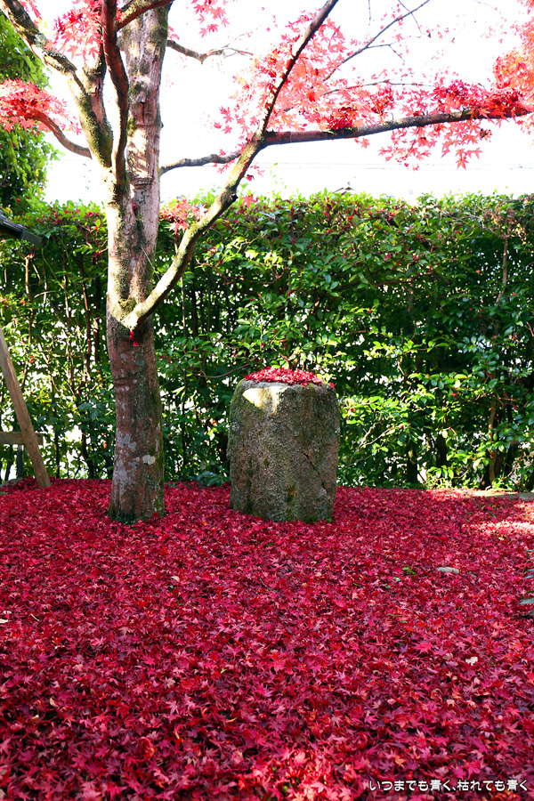 このお寺には与謝蕪村の墓があり、松尾芭蕉も滞在したといわれています。庭園の奥の芭蕉庵と紅葉、落葉の絨毯が印象的でした。紅葉の穴場的なところです。