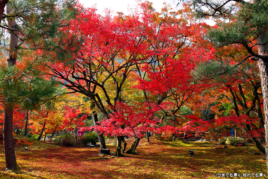 宝厳院は天龍寺の塔頭寺院で今回初めて訪れました。紅葉に染まる回遊式庭園「獅子吼の庭」は時間を忘れるほど素晴らしかったです。宝厳院は通常は非公開、春と秋の特別拝観時のみ公開されるとのことです。個人的には天龍寺の曹源池庭園よりも、こちらの庭園の方が好みです。