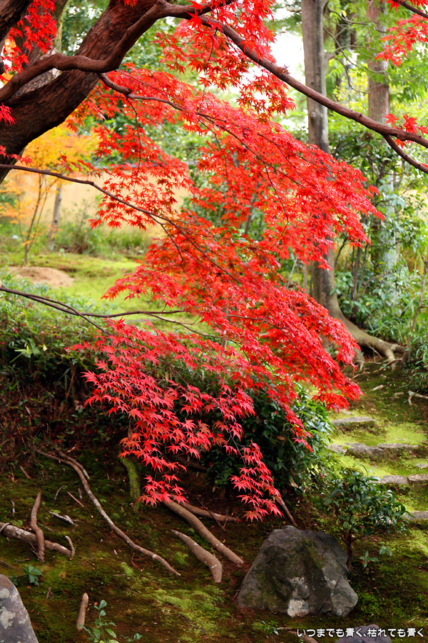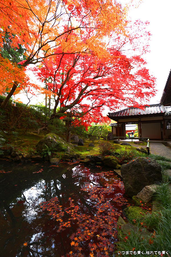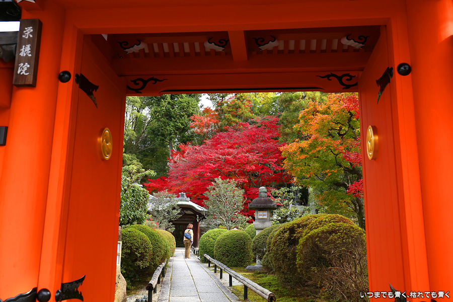 栄摂院は金戒光明寺の塔頭寺院です。昨年初めて訪れて気に入ったので、今年も紅葉を見に訪れました。こじんまりとした境内に赤と朱の鮮やかな木が大きく迫ってきていてとても美しいです。縁側に座ってのんびりと紅葉を眺める時間がとても贅沢です。