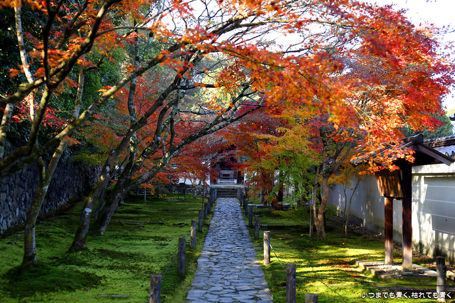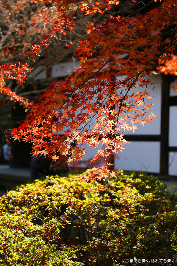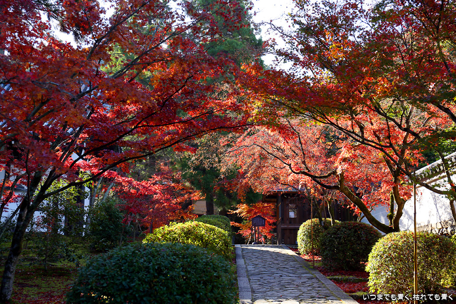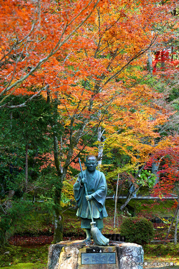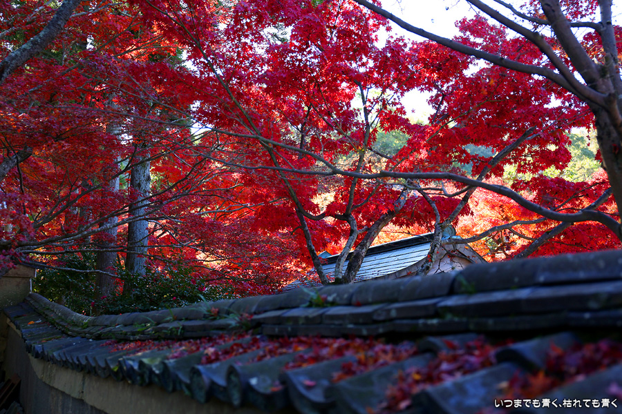 酬恩庵一休寺は、一休禅寺が人生の後半を過ごしたお寺です。昨年のJR東海「そうだ 京都、行こう」のポスターになったためにさらに人々に知られるようになりました。本堂の前の紅葉はすでに散り始めており、ポスターのような情景は目にすることはできませんでしたが、参道の紅葉は朝日を浴びて美しい赤色に染まっていました。