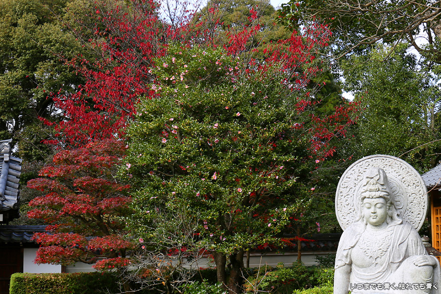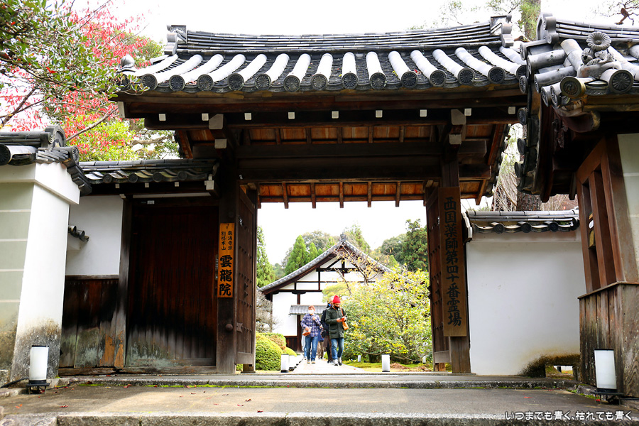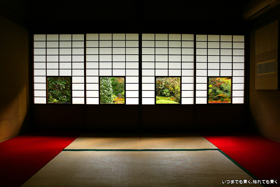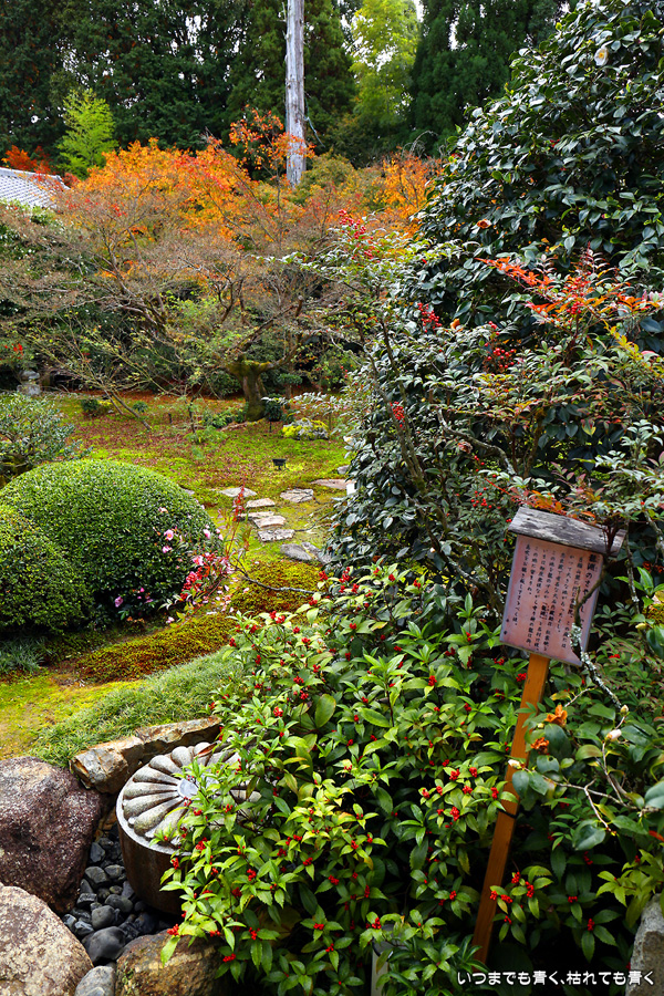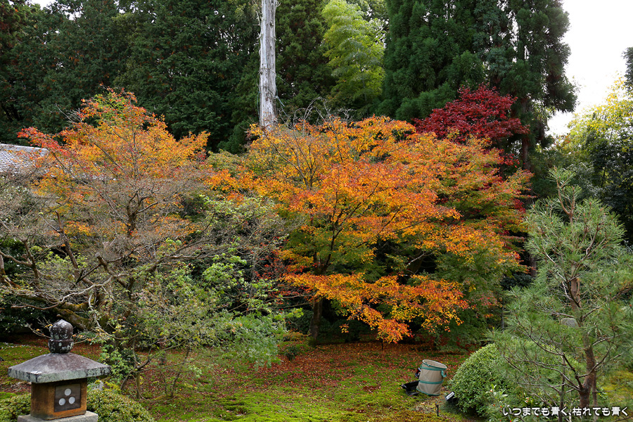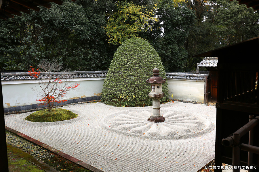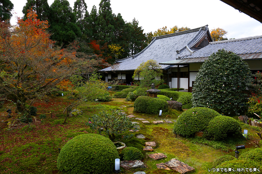「色紙の窓」と呼ばれる四つの窓に、椿、燈籠、紅葉、松を入れて撮影できるのですが、当日はその知識もなく紅葉も散り始めていたので、そんな写真を撮ることもしませんでした。人も少なかったのに残念なことをしました。他にも源光庵のような丸い「悟りの窓」、「迷いの窓」があり、趣のある静かで落ち着くお寺でした。