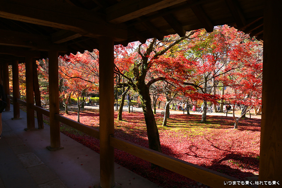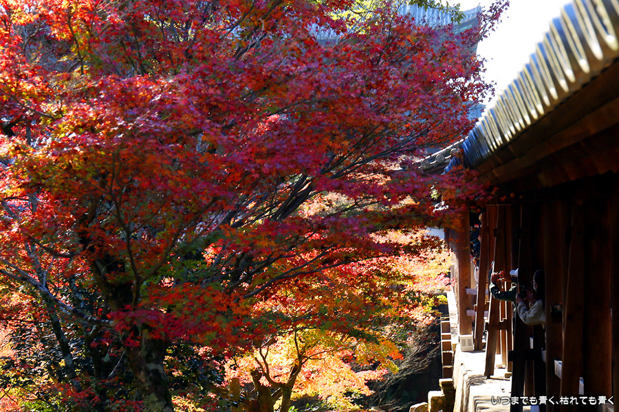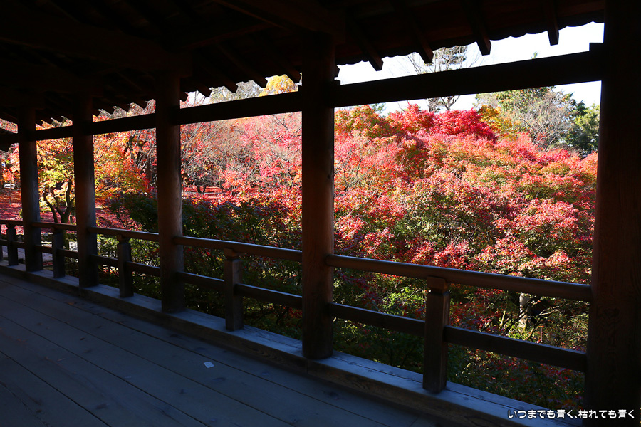 今回の京都3日間紅葉めぐりは、人の少ない穴場めぐりだったのですが、東福寺は何度も来ているのに最近は2015年から来ていないとわかって、どうしても東福寺の紅葉を見たくて混雑覚悟でやってきました。しかし、通天橋で人のいない写真が撮れるほど人が少なくて、嬉しい誤算でした。少し見ごろの時期が過ぎている感じはしますが、さすがに東福寺の紅葉は圧巻です。