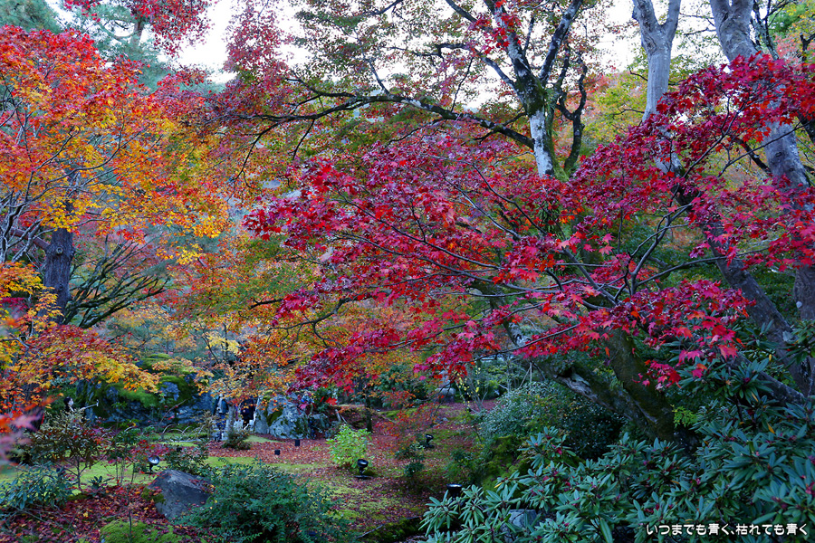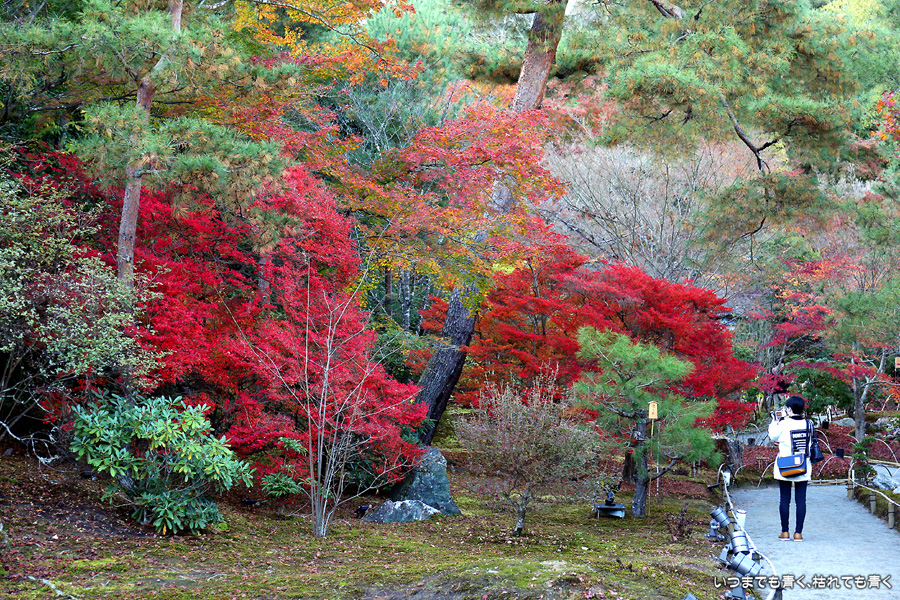 宝厳院は天龍寺の塔頭寺院です。宝厳院の素敵な庭園の紅葉はもう終わりに近づいており、太陽の光も山で遮られる時刻になってきていたため、紅葉の写真撮影にはちょっと厳しい状況でした。ちょっと残念でしたが、こういう庭園をのんびりと散策するだけで心はリフレッシュできます。