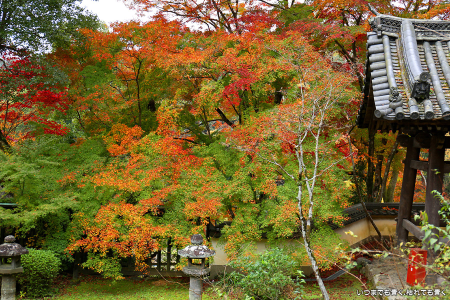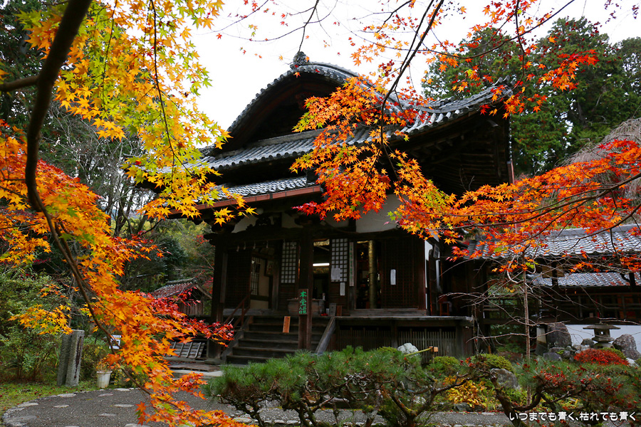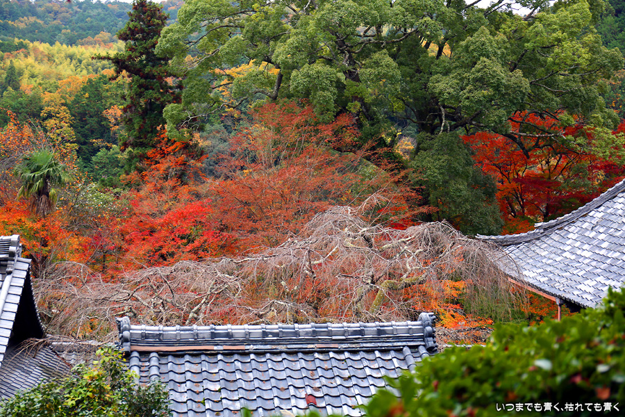 「京都3日間紅葉巡りぶらりひとり旅」の最後のお寺になります。このお寺はしだれ桜(樹齢200年なりひら桜)で「そうだ 京都、行こう」のポスターになったお寺です。昨年、善峯寺に行く途中通り過ぎたのですが、気になっていたので今年訪れてみました。訪問する人も少ないこじんまりとしたお寺ですが、私はこういうお寺が好きです。奥には在原業平のお墓があり、「なりひら寺」と呼ばれています。