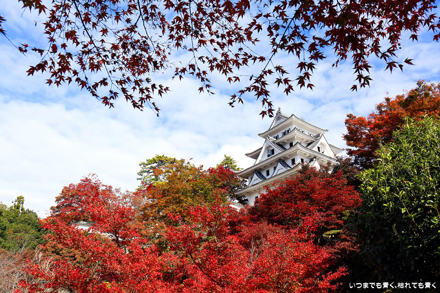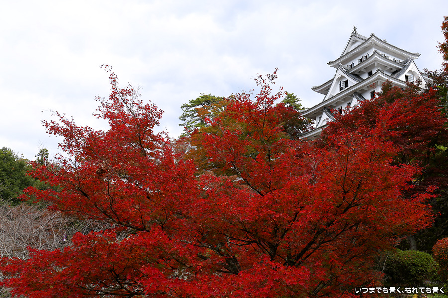 2021年11月13日に訪れた、岐阜・郡上八幡城の紅葉の写真です。