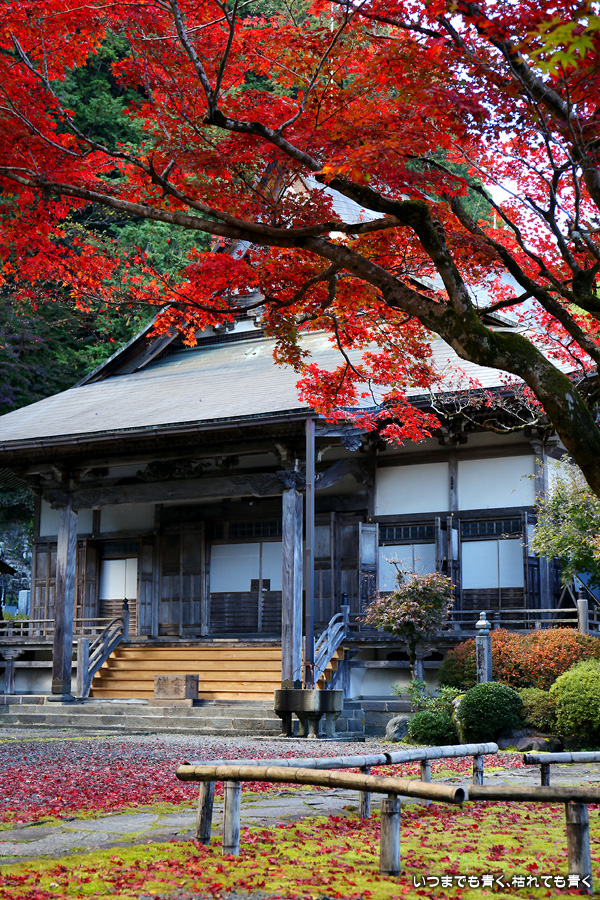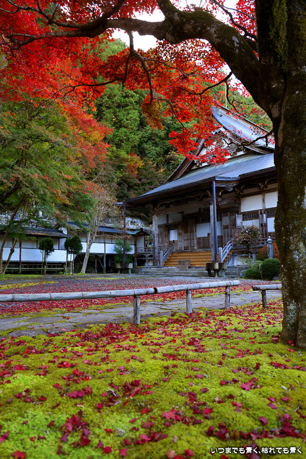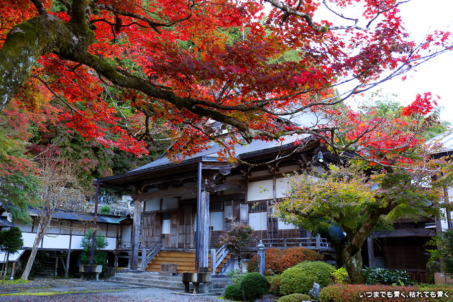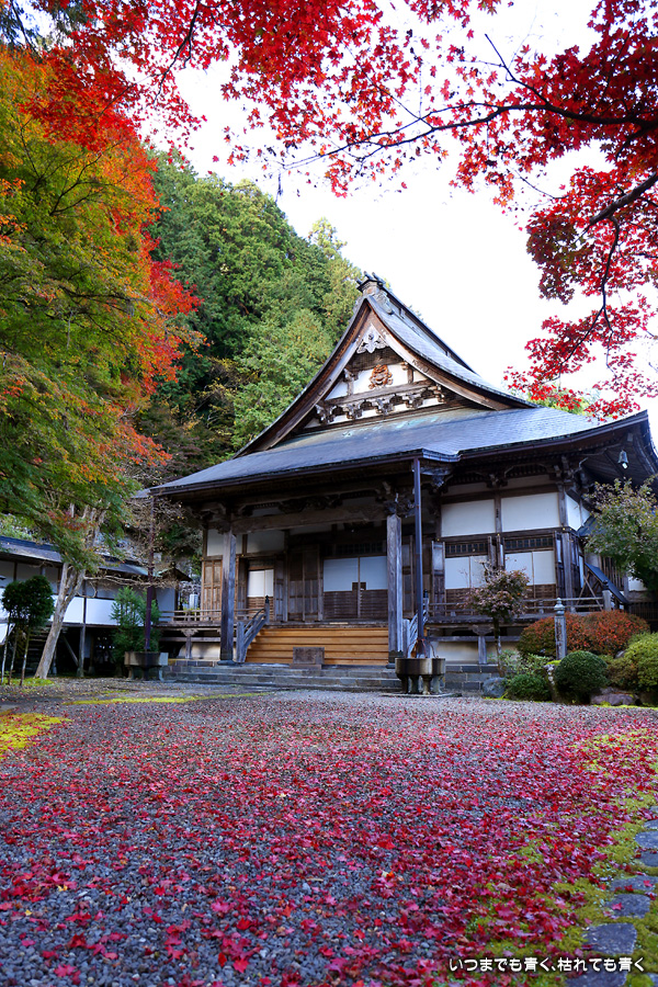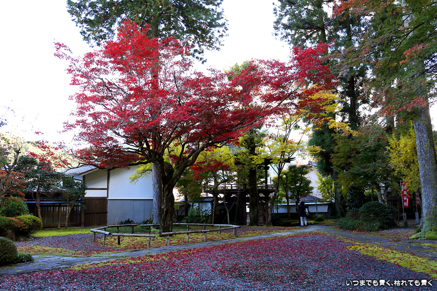 郡上八幡の古い街並みの奥にたたずむお寺です。大きくないお寺ですが紅葉と本堂や境内の風景がよく合うお寺です。来る人もまばらで静かに紅葉を楽しみ写真を撮ることができました。広くはないので被写体に大きな変化はありませんが、構図を変えることでいろんな情景を写してみました。