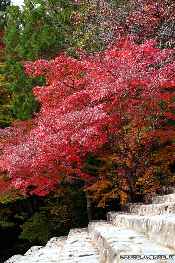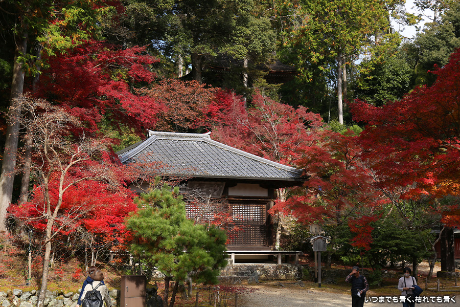 神護寺は5年ぶりになりますが、今回は紅葉が一番美しいのではないかと思える時期に来ることができました。長い時間いても飽きることなくいろんな構図を捜しながら写真を撮っていました。自己満足できる写真も多くて充実した時間を過ごすことができました。ただ、金堂まわりの撮影にあまりにも夢中になりすぎ、地蔵堂の方に行くのを忘れてしまいました。地蔵堂まわりの紅葉を見忘れただけではなく、今回もまた「かわらけ投げ」をせずに帰ってきてしまったことになります。「かわらけ投げ」は次回の楽しみに残しておくことにします。写真の最後の4枚は、楼門からの境内ではなく参道での写真です。