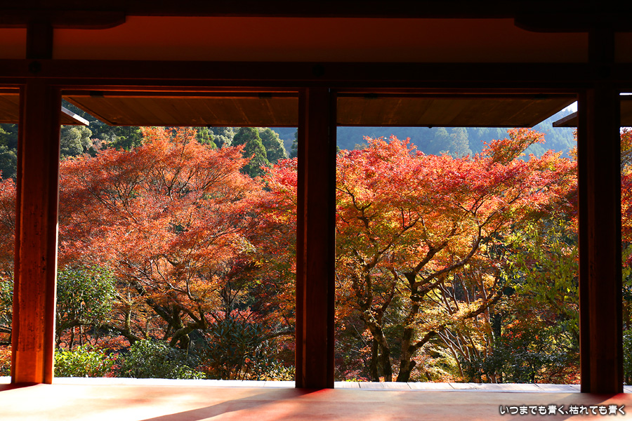 高山寺は4年前の夏に来たことがあるだけで、紅葉の高山寺は初めてになります。石水院の縁側に座って眺める紅葉は最高でした。高山寺は広い境内を散策したり石水院でのんびりと過ごしたり、贅沢な時間の使い方のできるお寺だと思います。