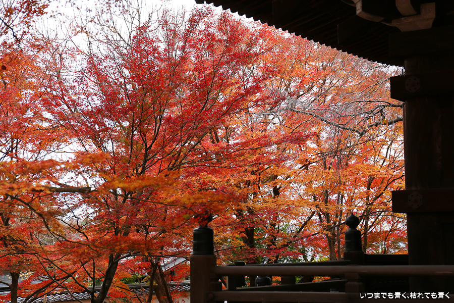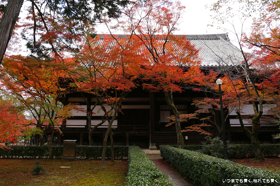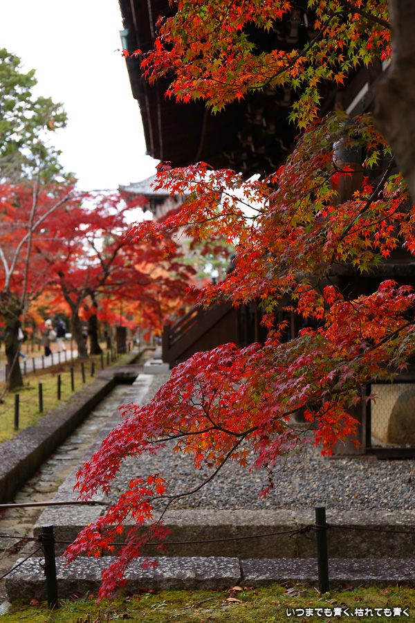 真如堂は紅葉の季節には何度も訪れていますが、今回は三重塔のまわりや本堂西側の赤く染まる紅葉は一番の見ごろは過ぎているような感じでした。ただ、本堂の東側や南側のオレンジ色の紅葉は素晴らしく見ごたえがありました。真如堂は境内を散策するだけでも紅葉は充分楽しめますので、今年も庭園の拝観は見送りました。