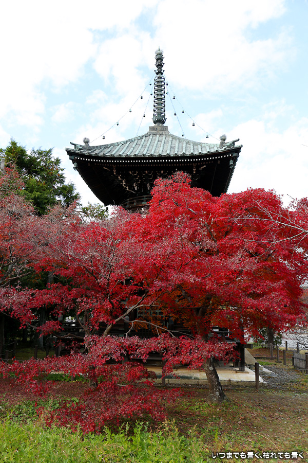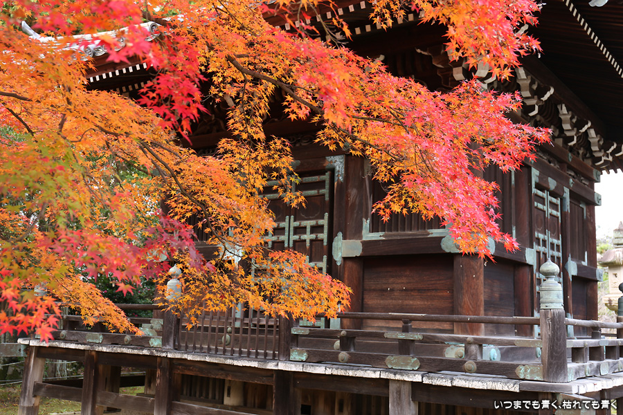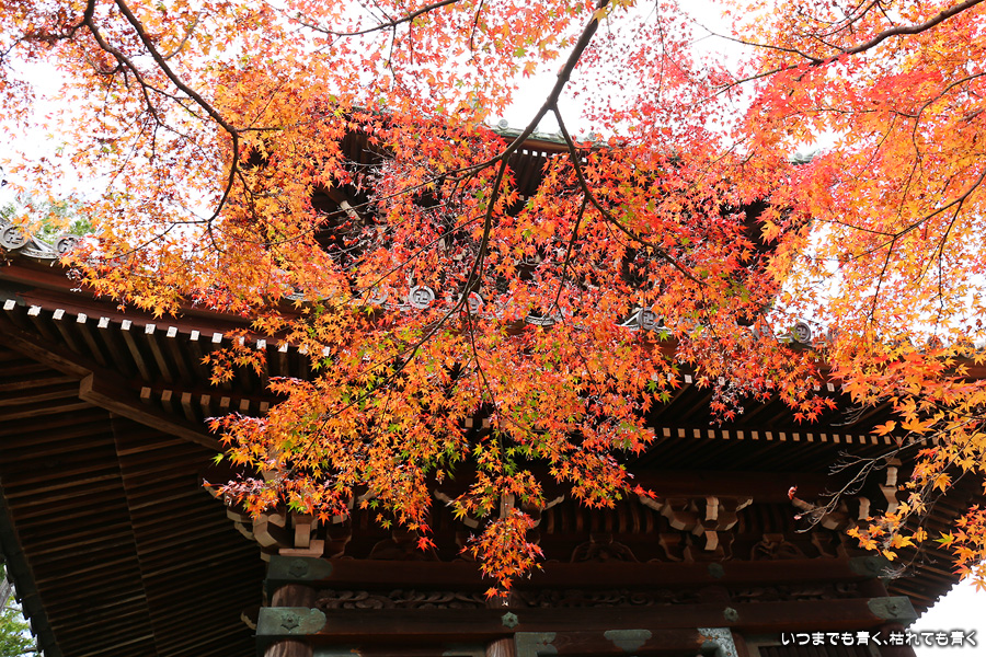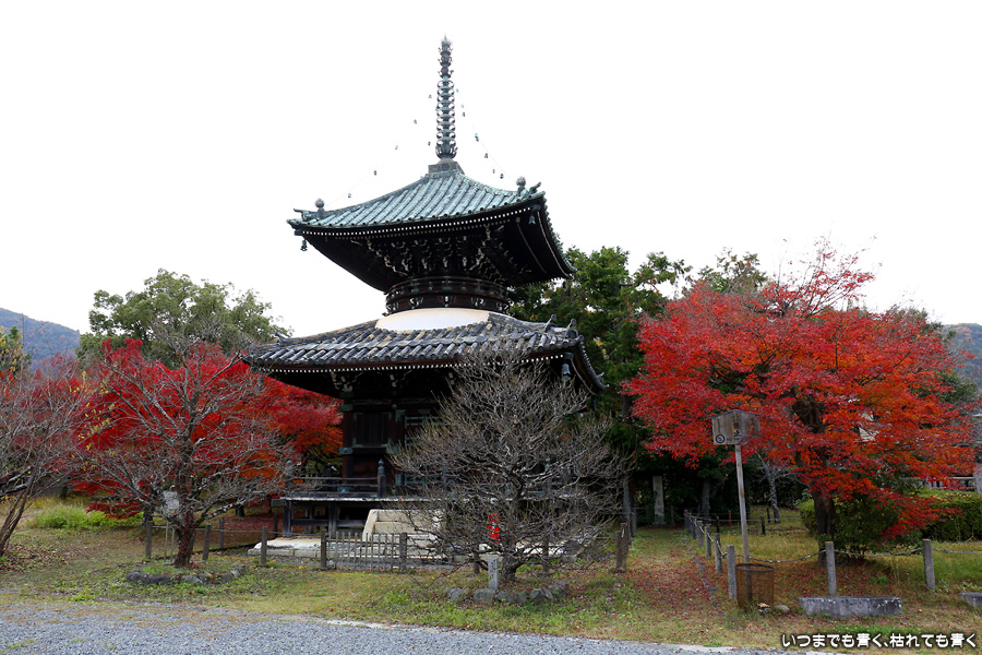 清凉寺は嵐山に行った時の拠点とする寺院で、拝観を目的とすることはあまりなく、今回も中継地点という位置づけでした。ですので、本堂内部、大方丈庭園、弁天堂庭園等は見たことがなく、無料の境内だけの散策と撮影ばかりです。境内の紅葉も美しいのですが庭園などと比べると単調な写真になってしまうのが残念なところです。次の紅葉の時期には、清凉寺の庭園を見てみようと思います。