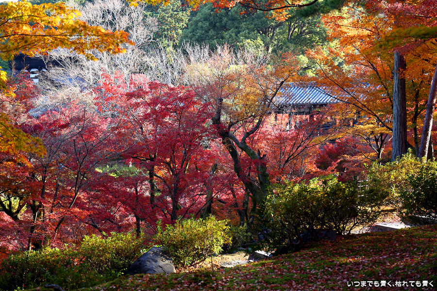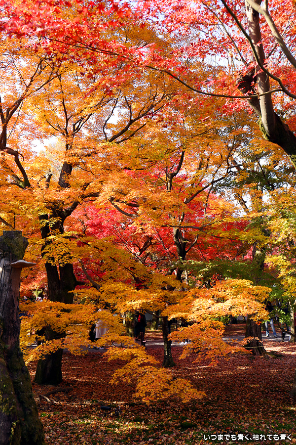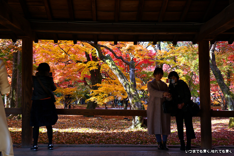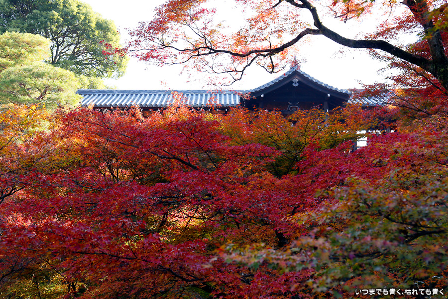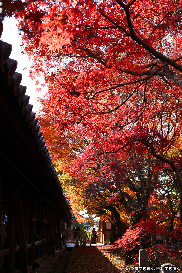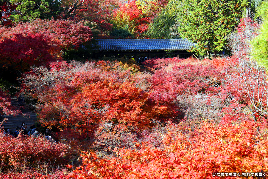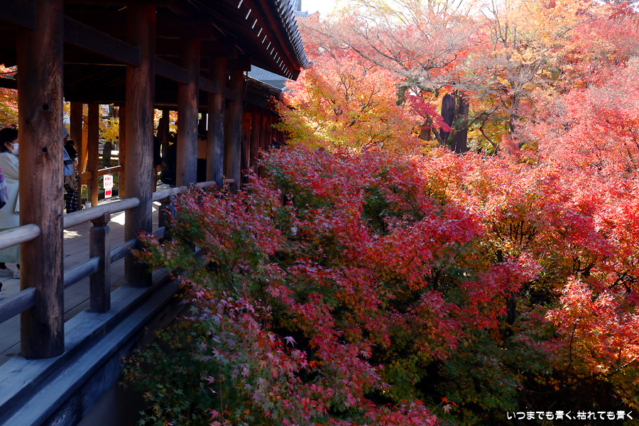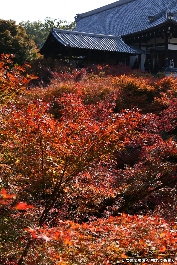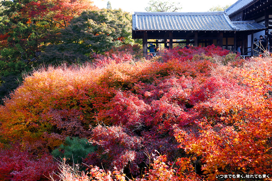 東福寺は人が多いことはわかっているのですが、毎年紅葉を眺めに来てみたいと思わせてくれるお寺です。私の好みにあっているようです。今年の東福寺も紅葉が見ごろで素敵でした。本当はのんびりと通天橋から紅葉の雲海を眺めるのがいいのでしょうが、写真を撮りたいという気持ちの方が強く、動いてばかりでした。今年は方丈庭園にも入りましたが、「八相の庭」をじっくりと楽しむこともせずに通天橋の写真を撮ることに夢中でした。