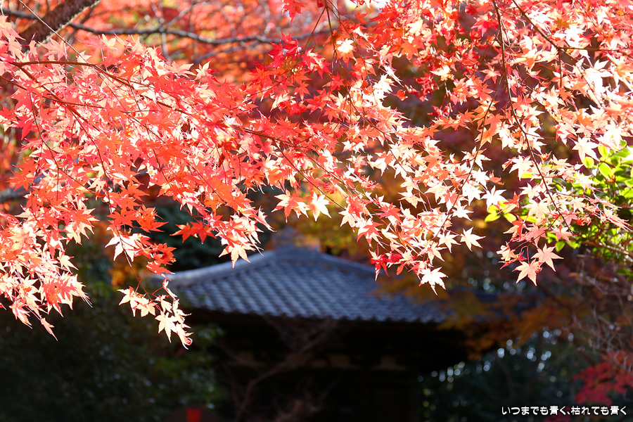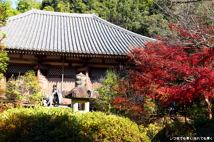不退寺もテレビで紅葉が美しいと紹介されていたので訪れました。不退寺は在原業平が創建したと言われているお寺で「なりひら寺」と呼ばれています。お寺めぐりを始めてからいろんなお寺を訪れましたが、在原業平ゆかりのお寺で「なりひら寺」と呼ばれているお寺はけっこう多いです。不退寺の境内は狭いですが、紅葉の見どころや撮影スポットはたくさんあって、1時間半以上撮影を楽しんでしまいました。太陽の角度によって見え方が変わるので、そういう意味でも長くいて変化を楽しむのが良さそうです。