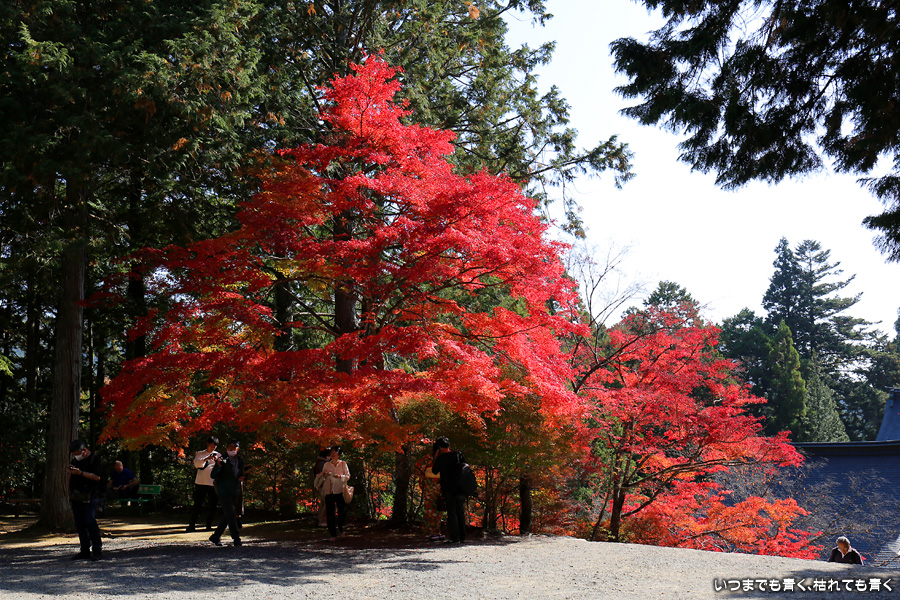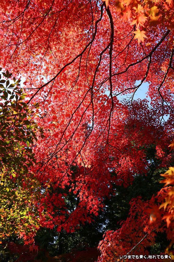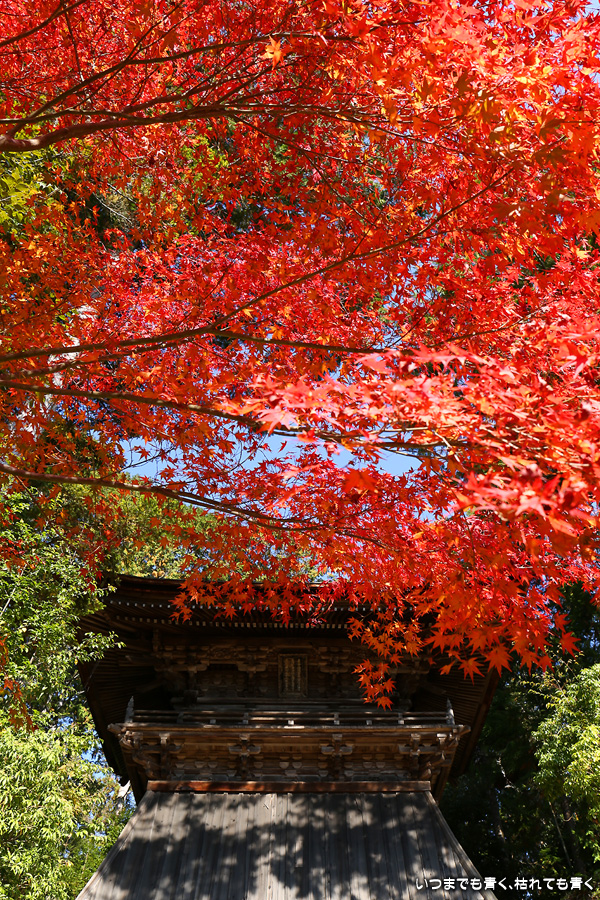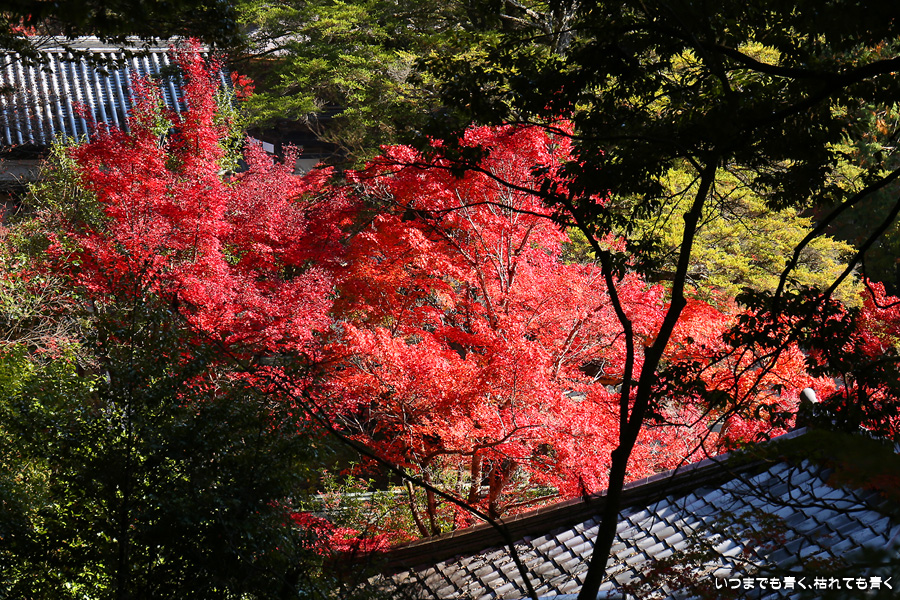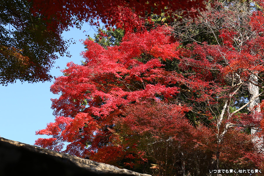 昨年より一週間早く訪れた神護寺ですが、今年は今がちょうど見頃で真っ赤な紅葉を楽しむことができました。一部青葉のままの葉もありますが、それはそれで緑、オレンジ、赤のグラデーションを楽しむことができます。何度も訪れている神護寺ですが、いつも行くのを忘れていた地蔵堂周辺や「かわらけ投げ」の場所まで行って撮影してきました。初めてやった「かわらけ投げ」はまともに左に円を描いて飛んだのは3枚中1枚だけで、ちょっと情けない結果となってしまいました。