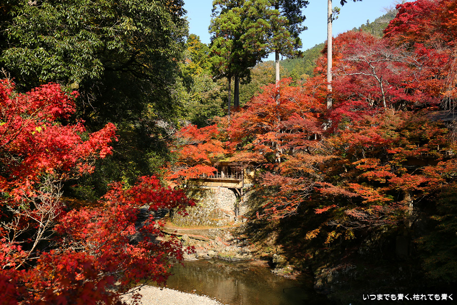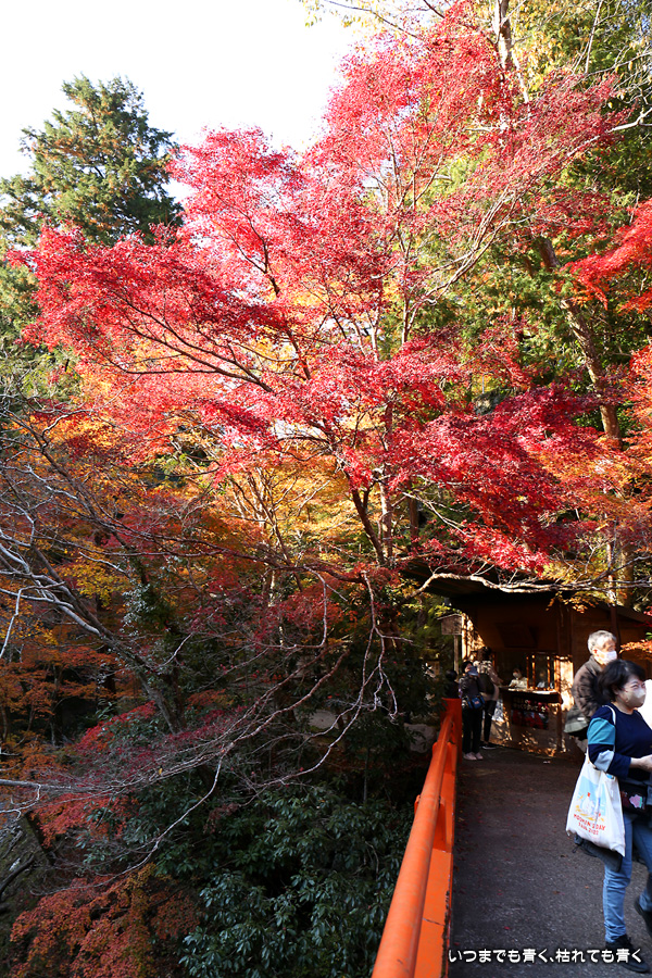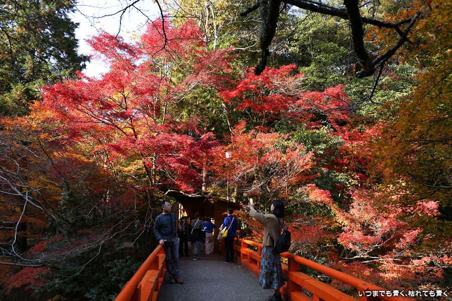 西明寺の境内の紅葉も見頃と聞いていたので拝観する予定でしたが、神護寺で時間を費やしてしまい、西明寺を拝観していると亀岡の鍬山神社に行く時間がなくなってしまうため、残念でしたが今回は指月橋での撮影のみにしました。