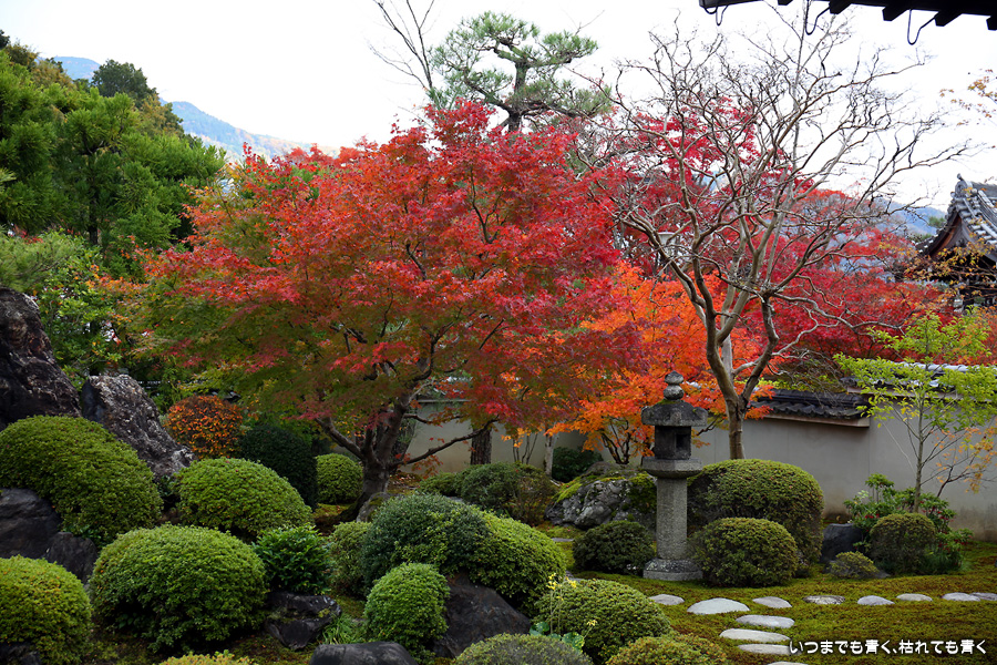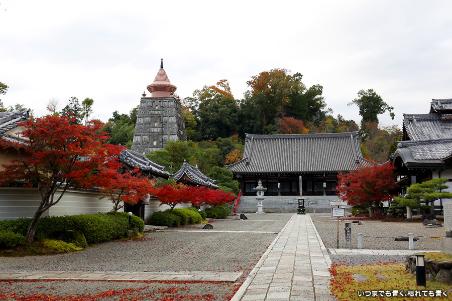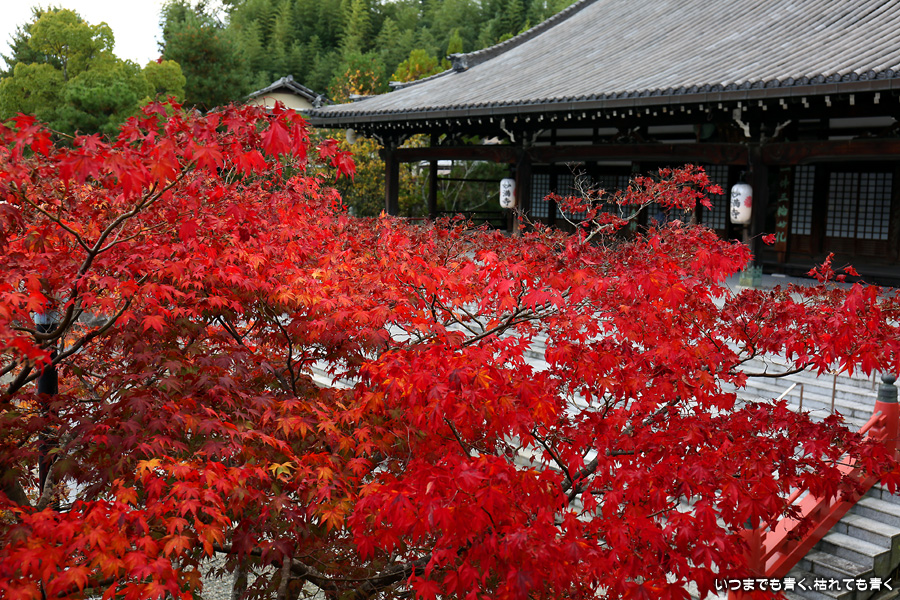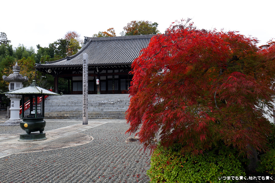 妙満寺は初めての参拝となります。広くて美しく整備された寺院で紅葉も真っ赤でとても美しかったです。いろんな角度から撮影することによって変化のある写真を撮ることができます。本堂と庭園を拝観することもできて、ゆっくりと時間を過ごすことができます。本堂からの比叡山を借景とする景色は素晴らしかったです。妙満寺は、名前から推測できる通り日蓮宗の寺院です。御朱印をいただく時に一番気を遣うのが日蓮宗のお寺で、御朱印と書かれているところは気兼ねなくいただけますが、何も書いていない場合は御朱印はいただけなくて御首題しかいただけないところもあります。普通の御朱印帳に御首題を書いていただける場合もありますし、御首題は御朱印帳には書いていただけないところもあります。よく確認することが必要です。妙満寺は御首題、御朱印ともにいただくことができます。