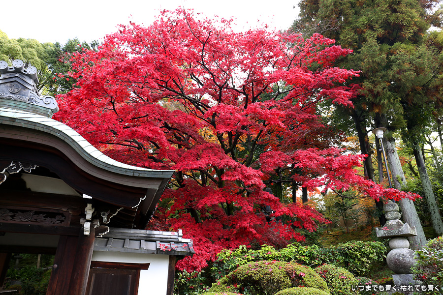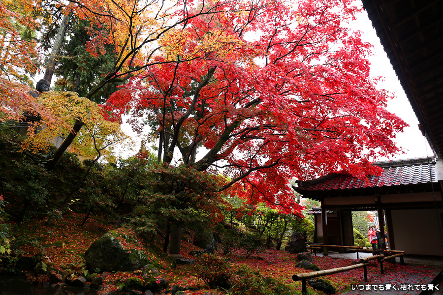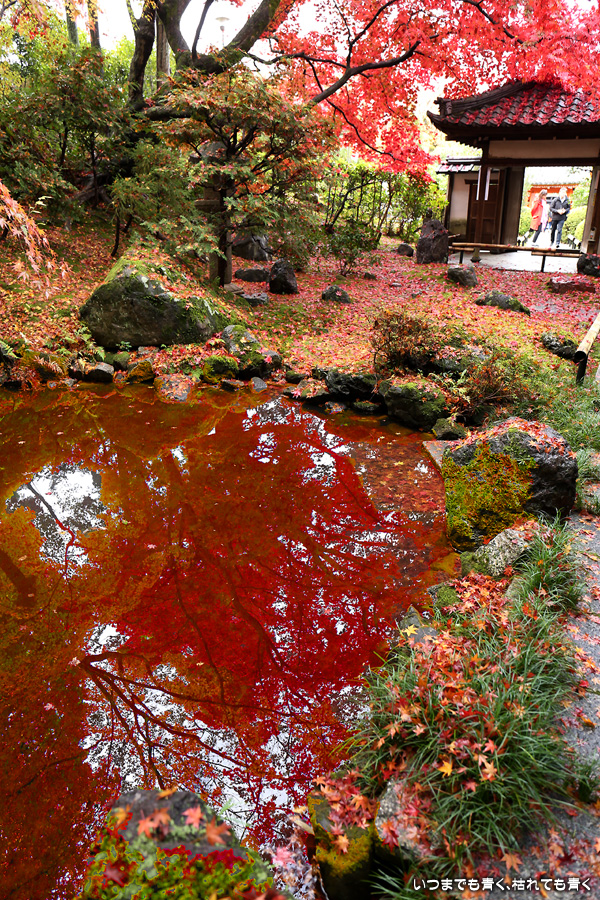 秋の京都を訪れた時には必ず訪れる栄摂院です。狭い庭ですがその庭の空を覆うような真っ赤な紅葉が魅力です。日が差していれば池に移る紅葉はもっと鮮やかに映っていて絵になる情景になったと思います。落ち紅葉も美しかったです。御朱印の案内がありましたので初めて栄摂院の御朱印もいただきました。