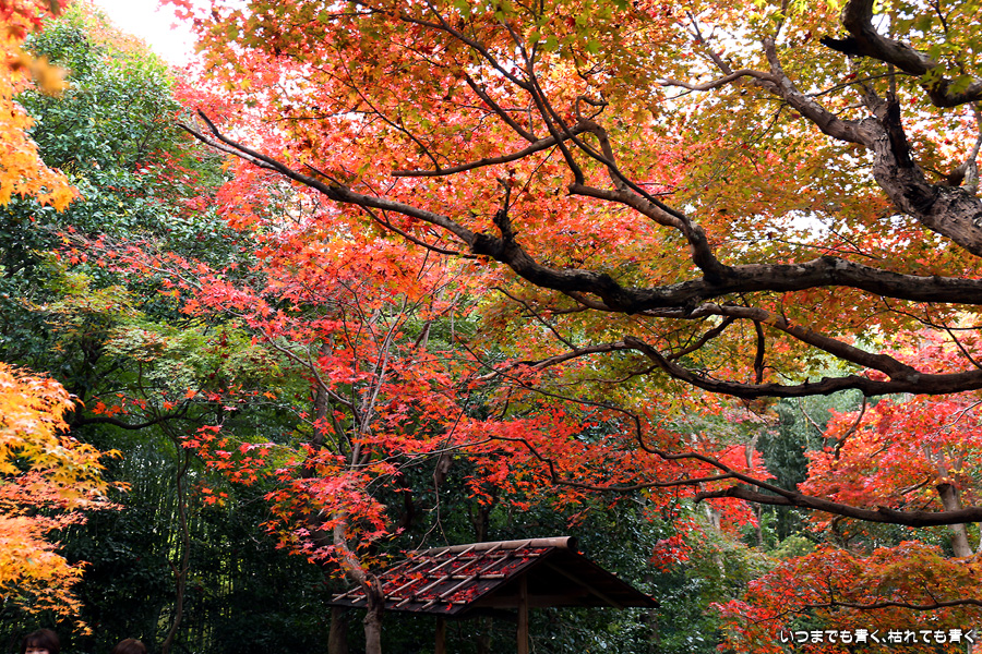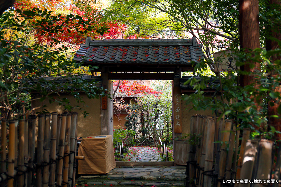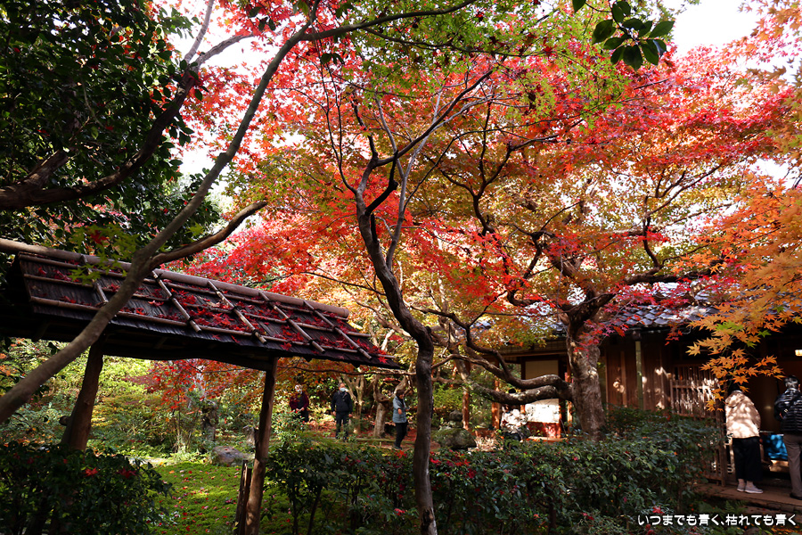 厭離庵は一度も拝観したことがなく、今回も予定には入れていませんでしたが、宝筐院から二尊院に向かう途中にあった紅葉の美しい看板をみて立ち寄ってみました。厭離庵は臨済宗天龍寺派の寺院で一般公開は紅葉の時期のみです。藤原定家の小倉山荘跡で、定家が百人一首を撰したところだと言われています。狭い庭園ですが趣があってとてもいいところです。思っていたよりも人は多くて、写真はどうしても人がはいってしまうことが多かったですが、それも雰囲気を残せていいかなと思います。