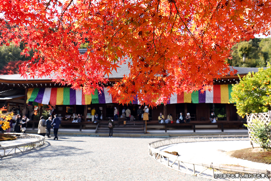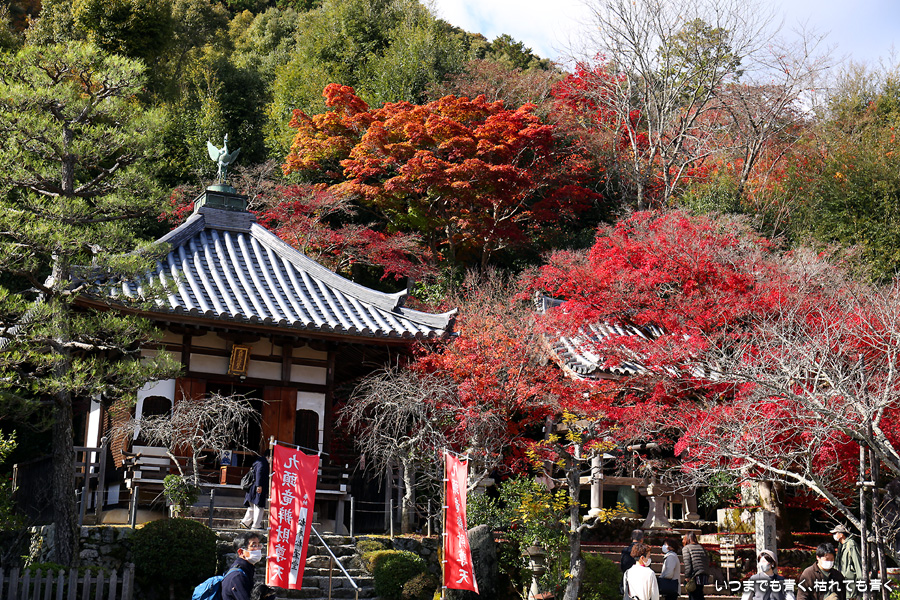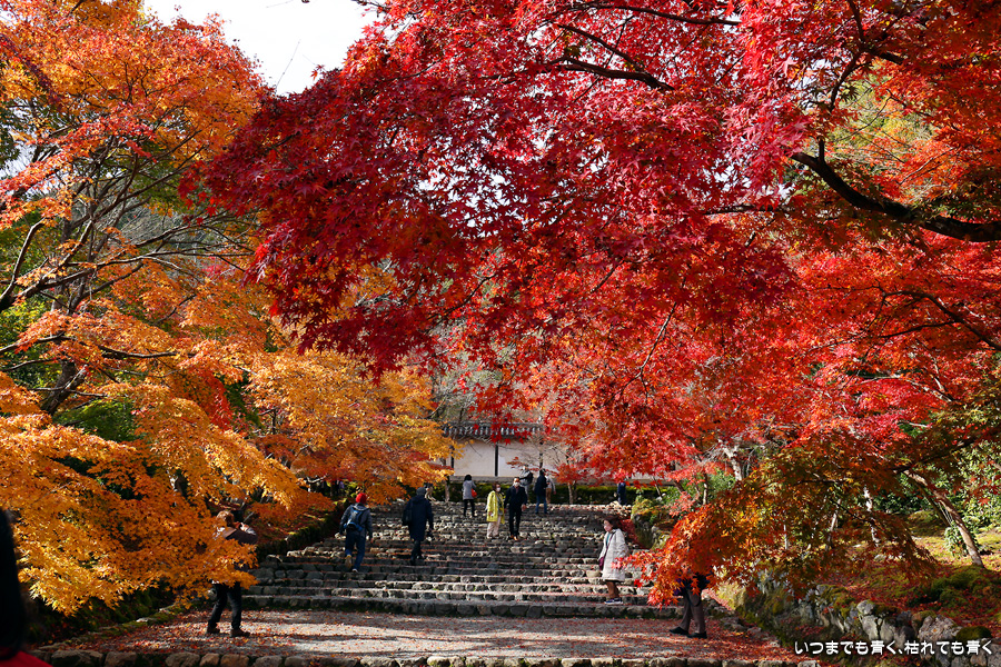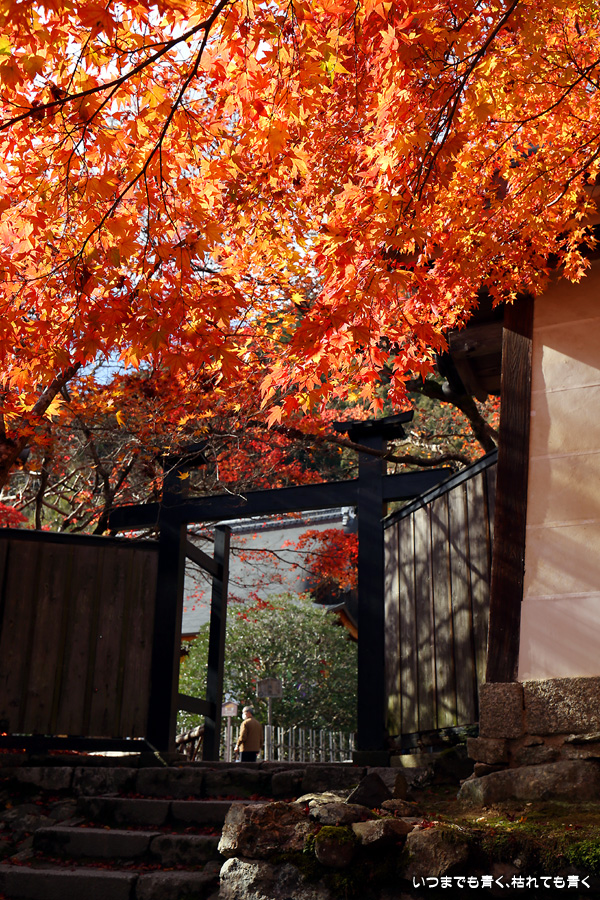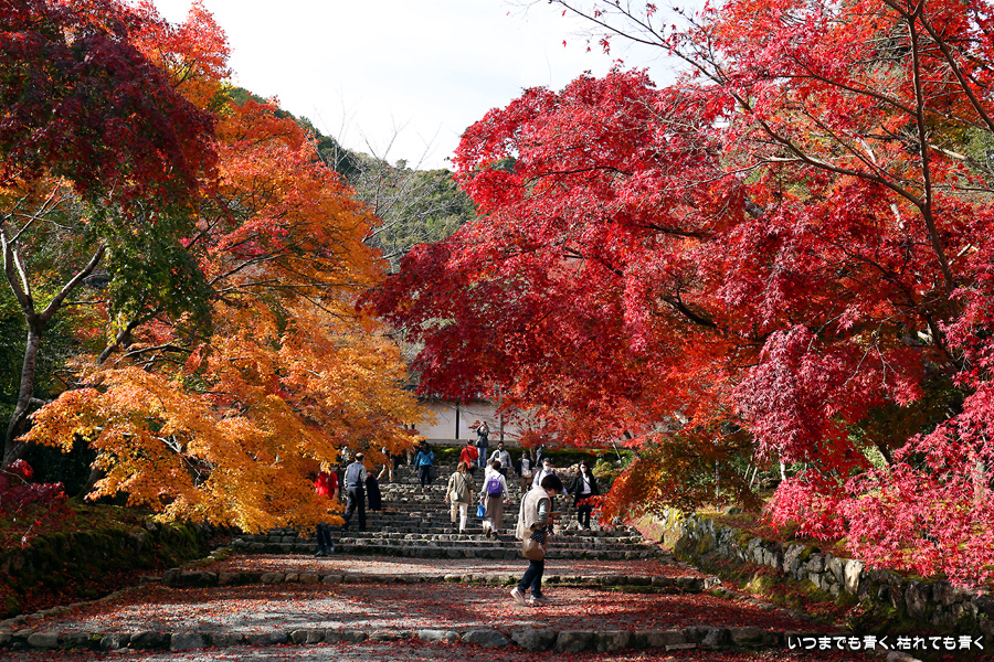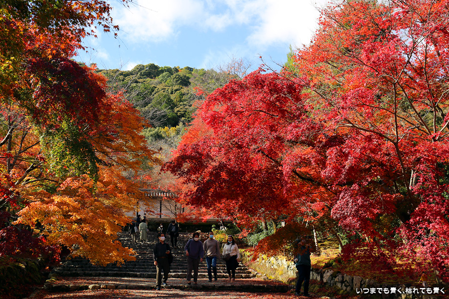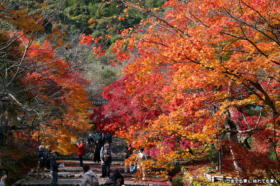 昨年は人のいない写真を撮りたかったので朝一番に訪れましたが、今年は宝筐院に先に行きましたので人が多いのは覚悟で訪れました。人が多くても二尊院は好きな寺院なので嵐山に来たら外すわけにはいきませんが、思っていたよりは人は多くなく、さすがに「紅葉の馬場」は人のいない写真は難しかったですが、その他の場所では少し待てば人のいない写真を撮ることができました。今年の二尊院の紅葉は色づきもよく、葉もまだ美しい葉が多くて一番いい時期に訪れることができたと思います。写真は、自己満足ですが思った通りに撮れている写真が多く、やっぱり全体的に被写体が美しいといい写真も多くなりますね。そういう時は写真の選別・色調補正作業も楽しくなります。