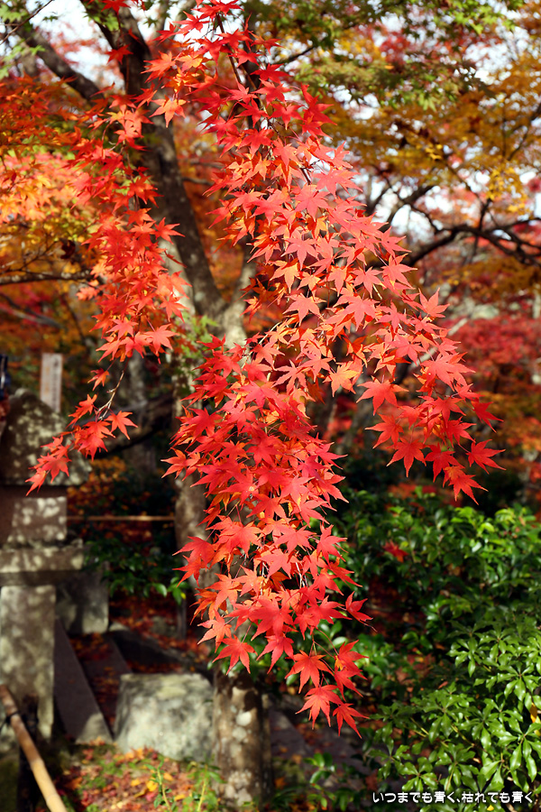 紅葉の季節、嵐山で私がいつも訪問するお決まりの場所は、二尊院、常寂光寺、祇王寺。今年は祇王寺は時間の関係と優先度であきらめましたが、常寂光寺の紅葉はやはり見ておきます。常寂光寺は境内が広く見所が多いので、紅葉の多様な景色を楽しめます。二尊院と同じく、常寂光寺も紅葉を楽しむには最適の時期でした。人はかなり多く写真を撮るにはちょっと我慢や割り切りが必要でした。