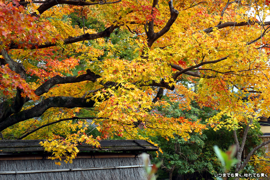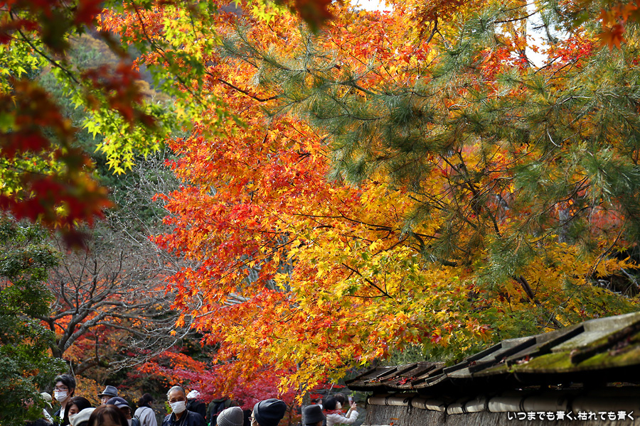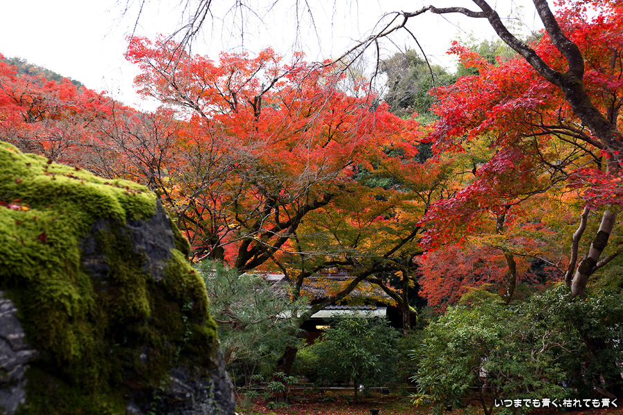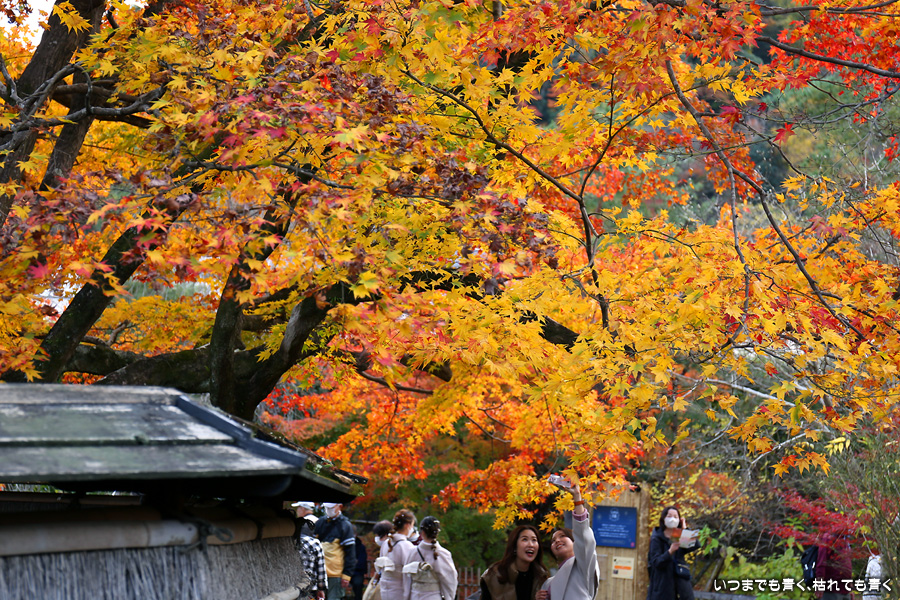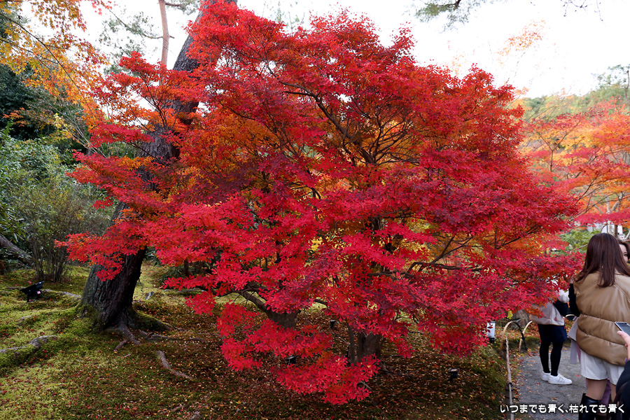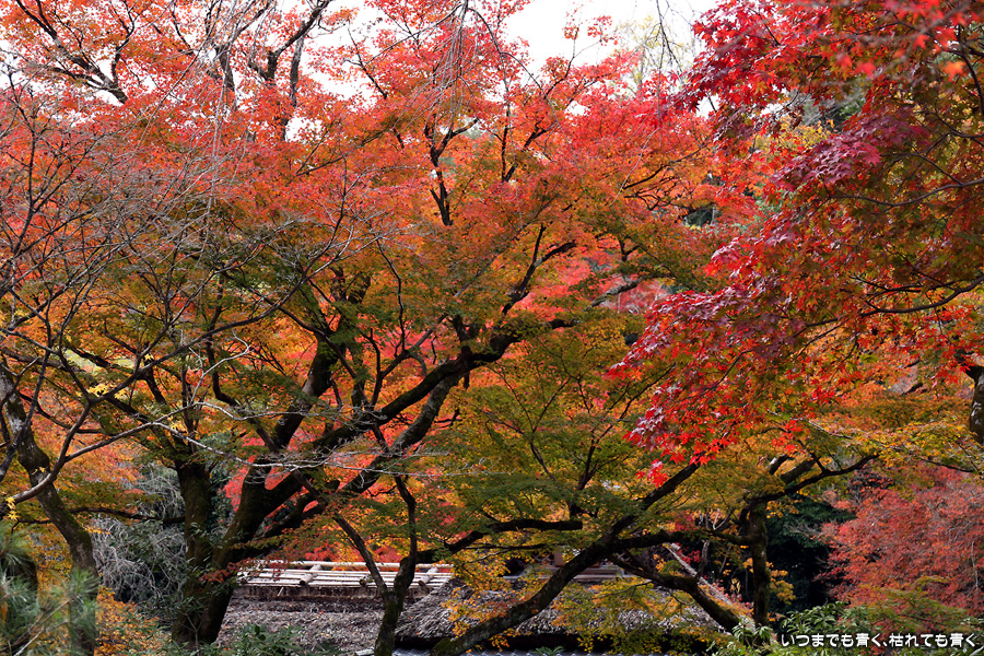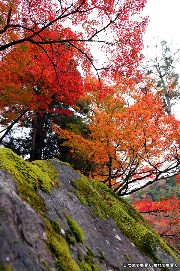 宝厳院は2年ぶりの拝観です。2年前に訪れた時も11月24日と同じ日でしたが、かなり葉を落としていた2年前に比べると今年はまだたくさんの葉を枝に残しており、壮観な紅葉を見ることができました。ただ、訪れた時刻も2年前と同じ14時半頃で、この時刻になると宝厳院は太陽の光が山で遮られて写真撮影にはちょっと厳しい状況でした。宝厳院は渡月橋にも近い紅葉名所なので、人が多いのも写真撮影には根気と割り切りが必要な場所です。