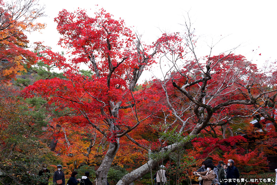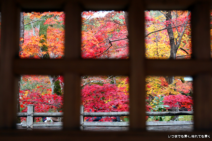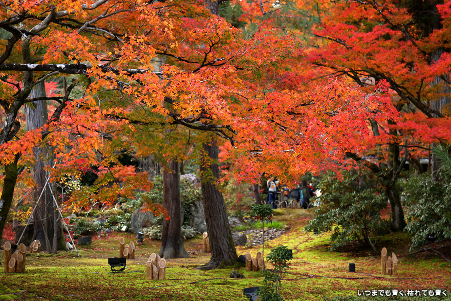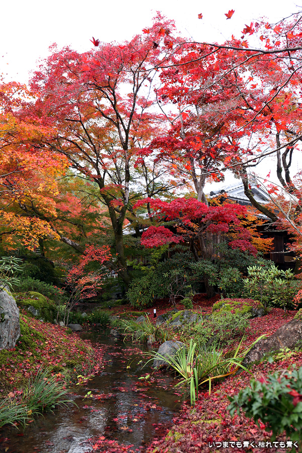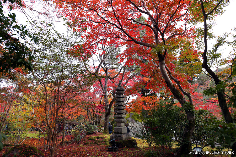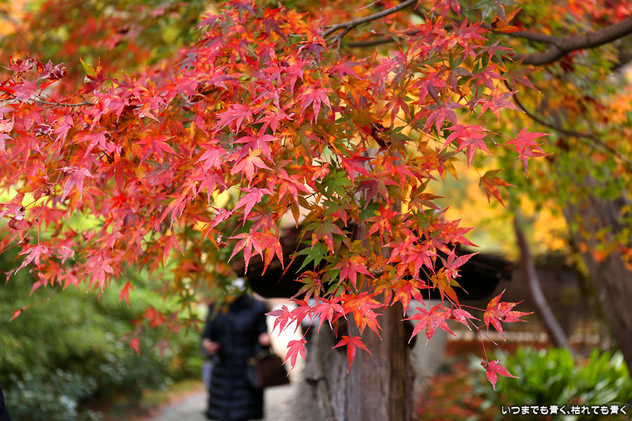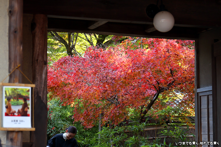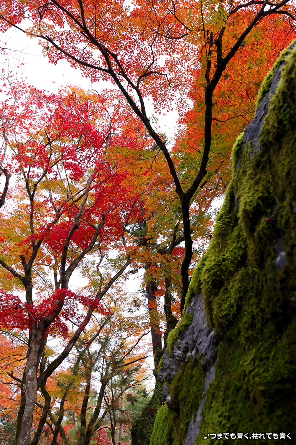 宝厳院は2年ぶりの拝観です。2年前に訪れた時も11月24日と同じ日でしたが、かなり葉を落としていた2年前に比べると今年はまだたくさんの葉を枝に残しており、壮観な紅葉を見ることができました。ただ、訪れた時刻も2年前と同じ14時半頃で、この時刻になると宝厳院は太陽の光が山で遮られて写真撮影にはちょっと厳しい状況でした。宝厳院は渡月橋にも近い紅葉名所なので、人が多いのも写真撮影には根気と割り切りが必要な場所です。