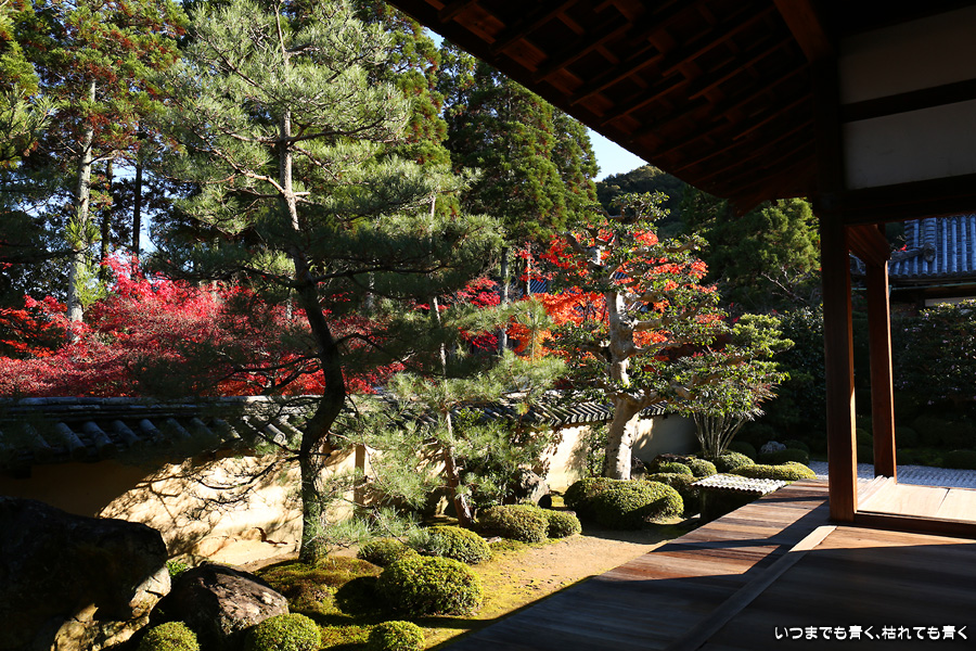 一休寺は2019年以来になります。今回も残念ながら、本堂前の紅葉は少なく同じ境内でも紅葉が早いものと遅いものがあるのかもともと葉が少ないのか、「そうだ京都、行こう」のポスターのような情景には出逢えませんでした。ここが5泊6日の京都ぶらり旅の最後の訪問地なので、静かな庭園の縁側に座って、あそこにも行きたかったとか行けばよかったとか、そんなことを思いながら今回の旅を総括していました。