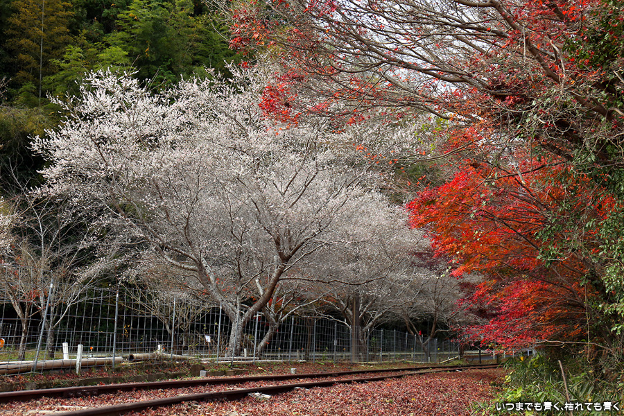 2022年12月1日(木)に撮影した、愛知県豊田市・旧名鉄三河線(山線)三河広瀬駅(廃駅)の紅葉の写真です。
