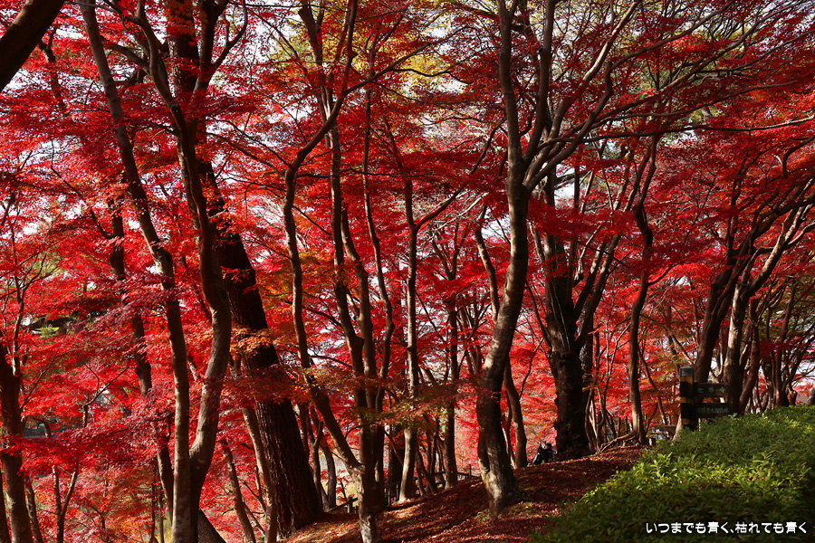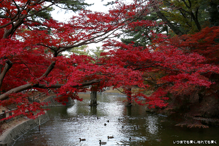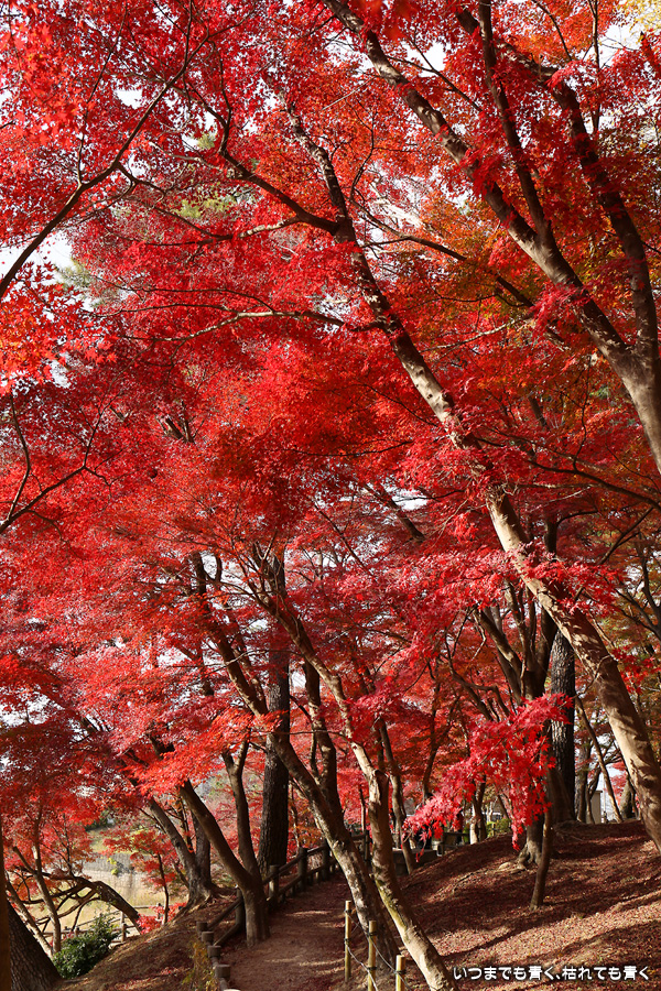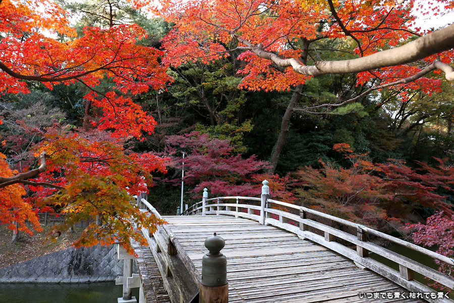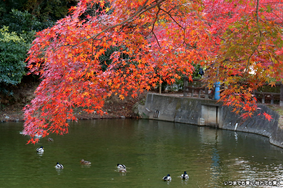 今年の紅葉は、いつも出掛ける京都は人が多いので近場の名所だけにしています。この岡崎市東公園の紅葉を見に来たのは久しぶりでしたが、ちょうど見ごろできれいでした。残念だったのは、浮御堂のあるあしのべ池の水が無かったことでした。久しぶりにウォーキングも兼ねていい時間を持てました。