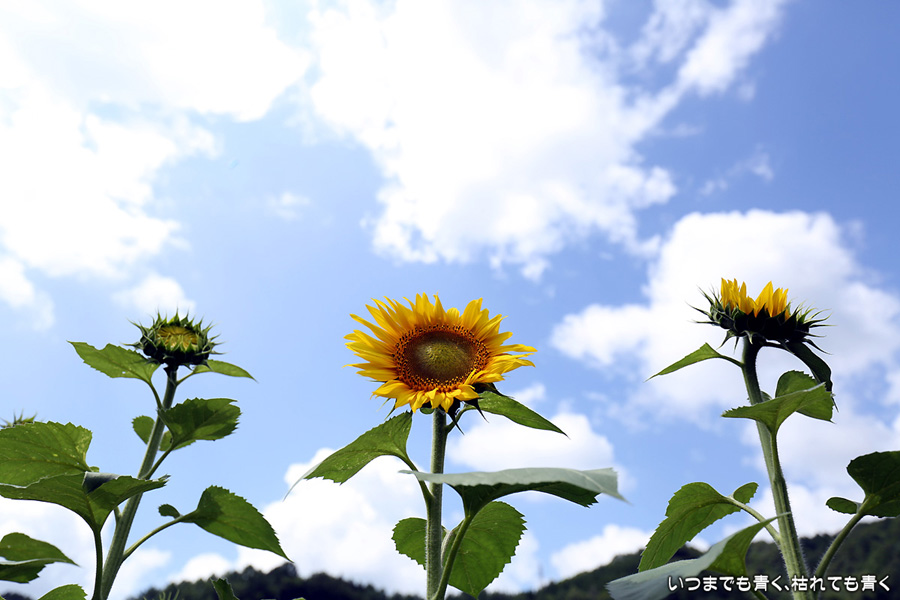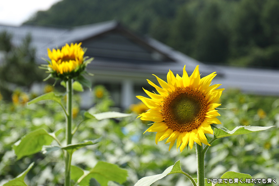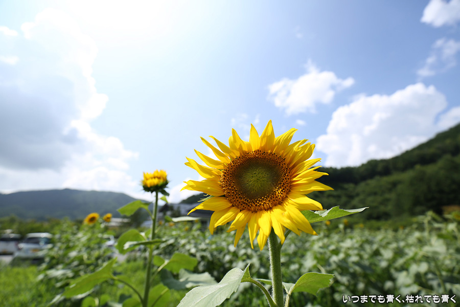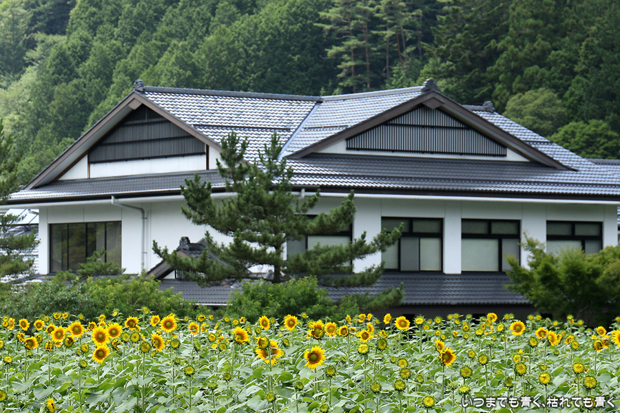 2017年8月6日に訪れた、長野県平谷村・平谷温泉ひまわりの湯のヒマワリの写真です。