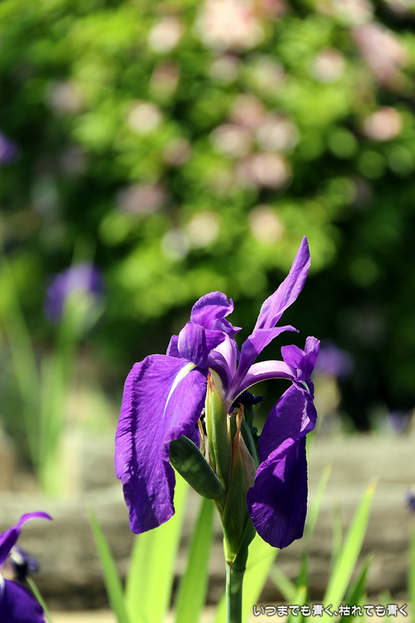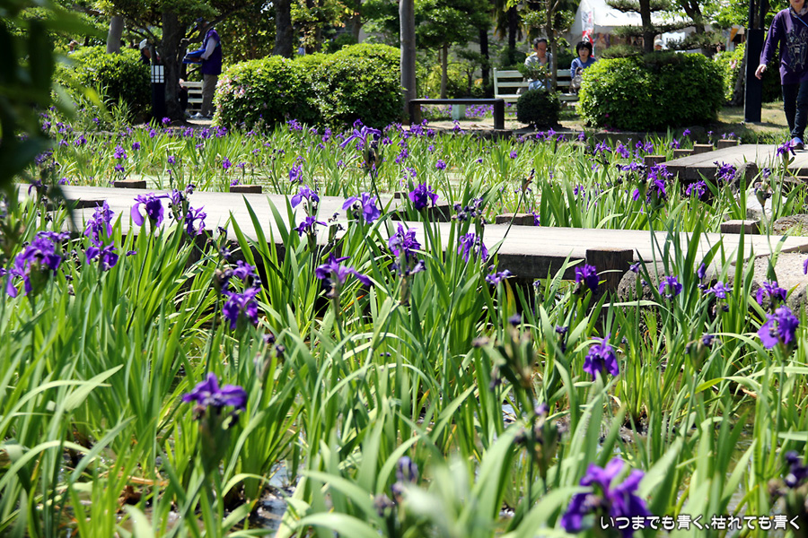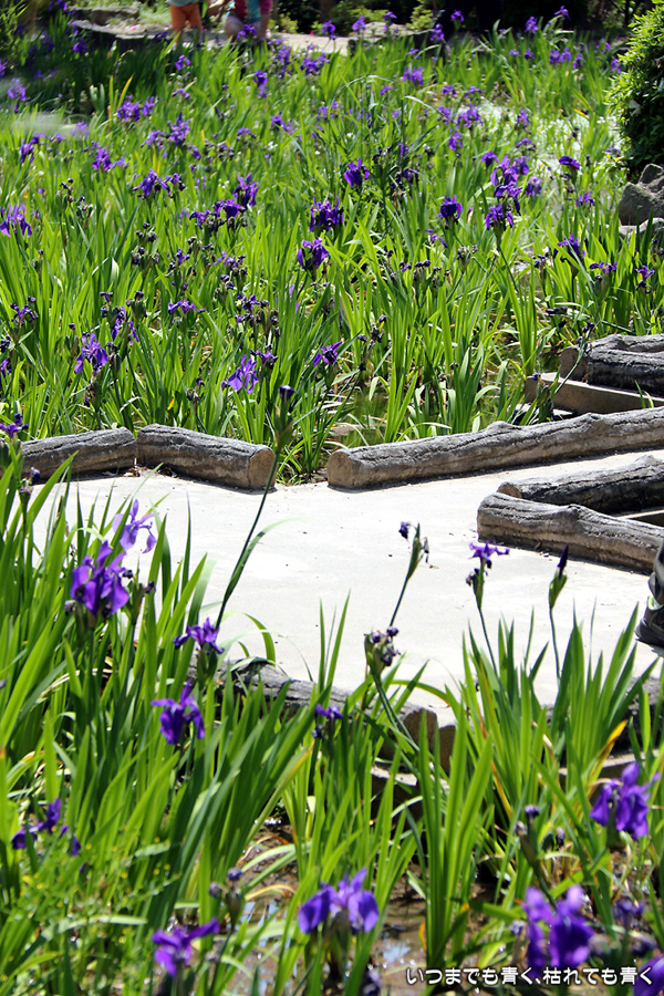 現地に行き、駐車場のおじさんに「今、かきつばたの見ごろはどうですか?」と尋ねたら、「見ごろだけど、株が少ないなぁ」と言っていたので、どんな感じかなと思って行ったのですが、想像していた以上の少なさでした。園内のガイドのおじさんとも話をしましたが、昨年よりは少し良くなったけど、今年もまだダメとのこと。池の水の循環を改善したり、新しい株を別の場所で種から育てていれたりしているそうですが、昨今の異常な温度変化の影響があってなかなかうまくいかないみたいです。時期的にも、例年は5月10日くらいが見ごろなのですが、今年は一週間前くらいが一番花の見ごろだったようです。今日は三番花が多く、萎んだ一番花、二番花も見栄えを損ねていました。今年は、チューリップも藤もかきつばたも、すべて見る時期を誤ってしまいました。気温変化が激しい難しい春でした。