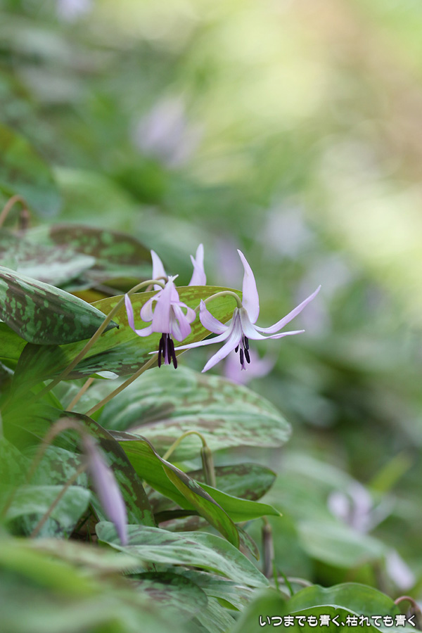 今年も香嵐渓のカタクリの花を見てきましたが、昨年までの密度高く咲き誇るカタクリの花に比べ、今年は花の数がとても少なく感じました。いつもの駐車場のご主人や奥さんに伺うと、今年は山からニホンカモシカが下りてきて、カタクリの花や葉を食べてしまうのだそうです。うまい対策が見つかるといいのですが。カタクリの花は毎年撮影していますが、なかなか絵になってくれない難しい花です。午前中に行くと花びらを閉じてしまっていますし、ひとつひとつの花を目立たさせるのか、群生をうまく表現するのか、迷ってしまいます。構図だけは単調にならぬように心がけましたが、並べてみると同じような構図が多くなってしまいました。