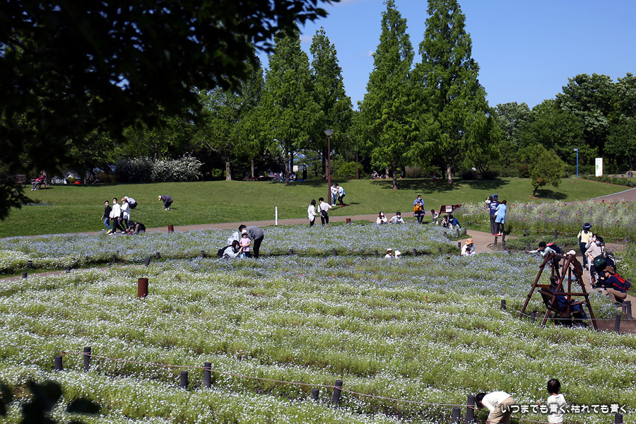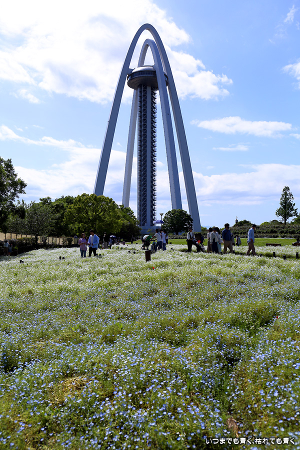 2022年4月30日に撮影した、愛知県一宮市・国営木曽三川公園138タワーパークのネモフィラの写真です。