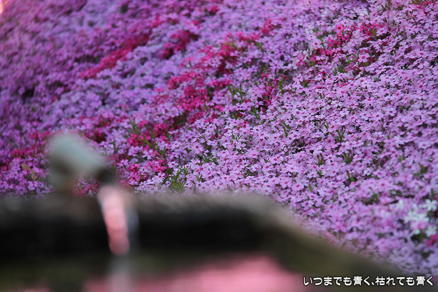 今日は昨日の雨が嘘のように暖かな快晴となりましたので、どうしても見ておきたくなった岐阜県郡上市の國田家の芝桜を見に行ってきました。見頃は4月末からゴールデンウィーク中だということでしたので、ひょっとしたらもう鑑賞に値しないかもと思って出かけましたが、まだピンクや赤の絨毯を充分楽むことができました。4月末だと、満開の芝桜と、桜、水仙、チューリップとの競演も見られて、一層華やかで美しいので、来年は見頃の時期に絶対に見に行こうと思います。國田のおばあちゃん(故人)の意思が、地域の方と見学者の募金でいつまでも引き継がれていくことを願います。