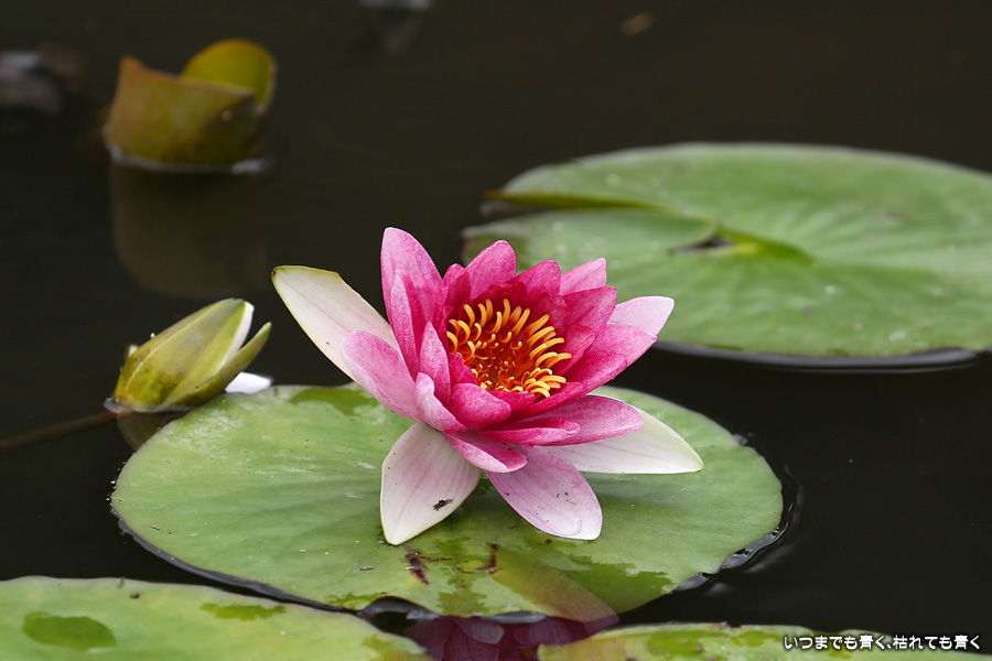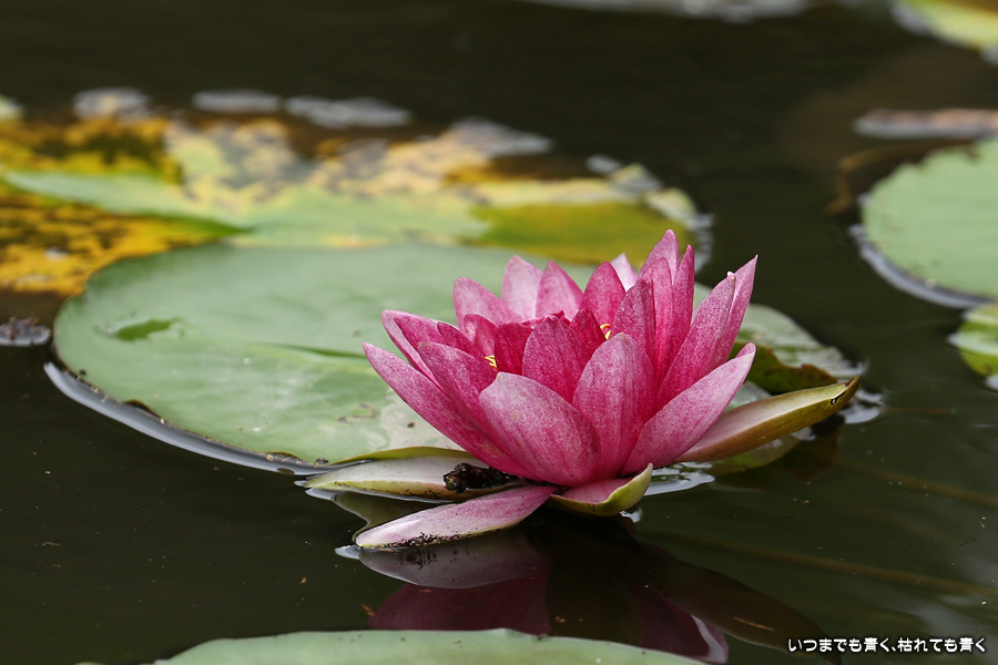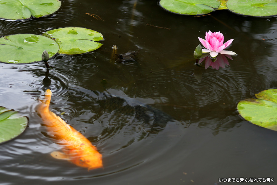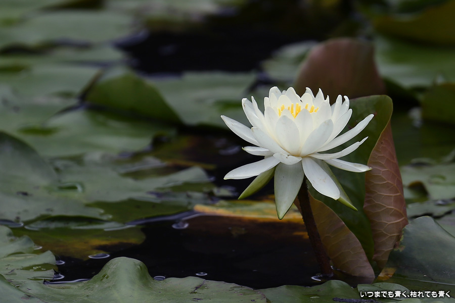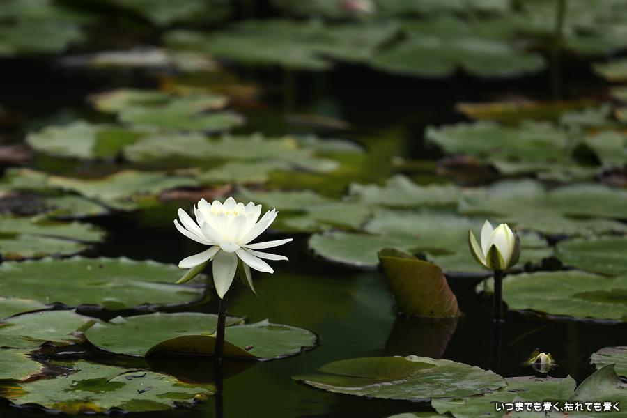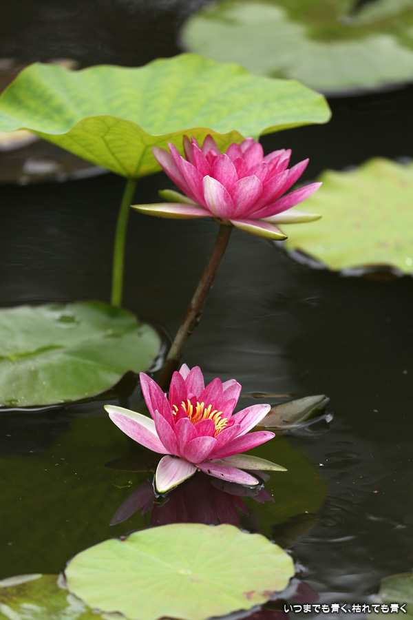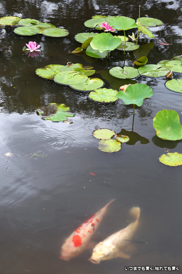 初めて訪れた勧修寺の睡蓮の花です。観音堂の脇の池にたくさん咲いていました。同じ池に蓮の花もたくさん咲いていましたので、その写真は