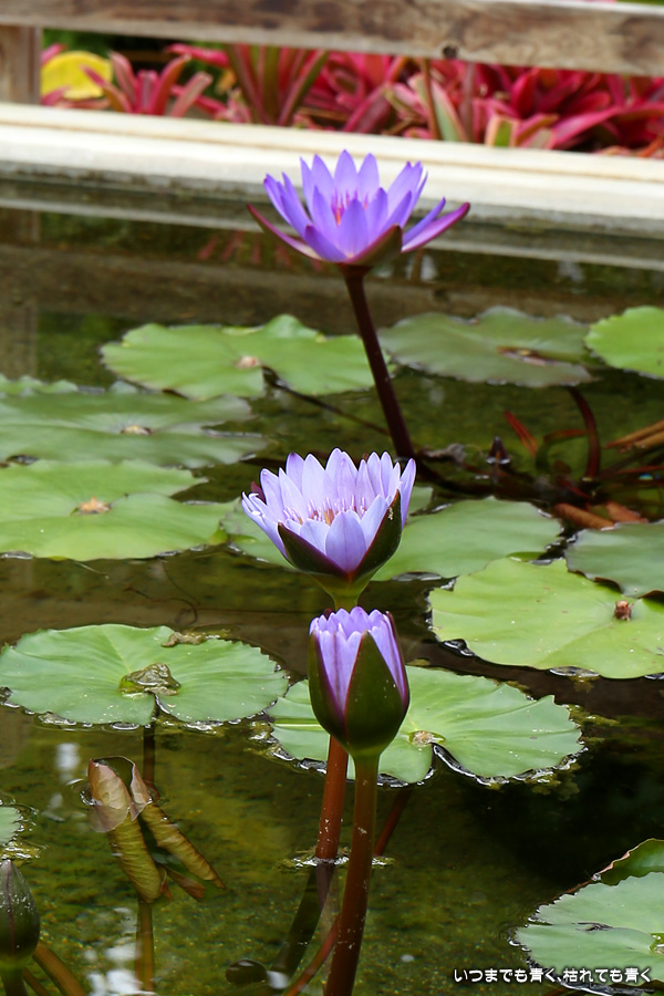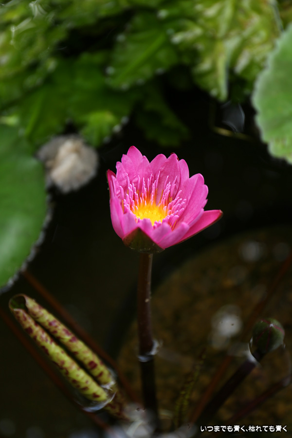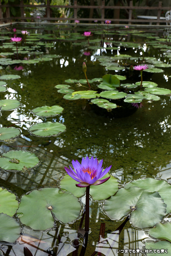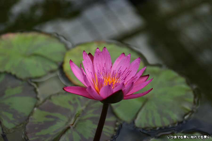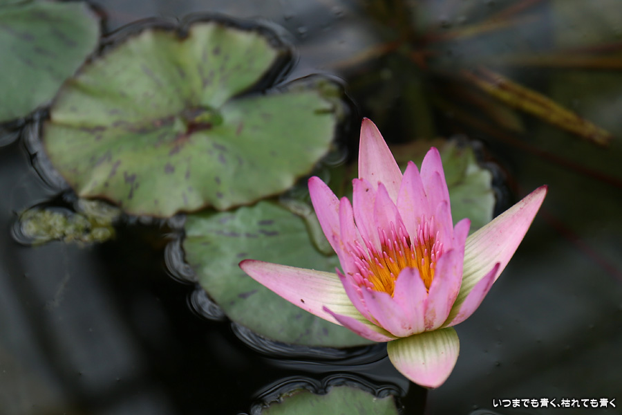 秋の西山公園を散策してきた時に撮影した睡蓮の写真です。ハウスの中の池に可愛らしく咲いていました。睡蓮は別名「ヒツジグサ:未草」とも言います。蓮と混同されることもありますが、蓮は葉を水の上に立ち上がらせていますが、睡蓮は葉が水に浮いていることで区別できます。また蓮はレンコンから立ち上がっていますが、睡蓮は球根から立ち上がっています。