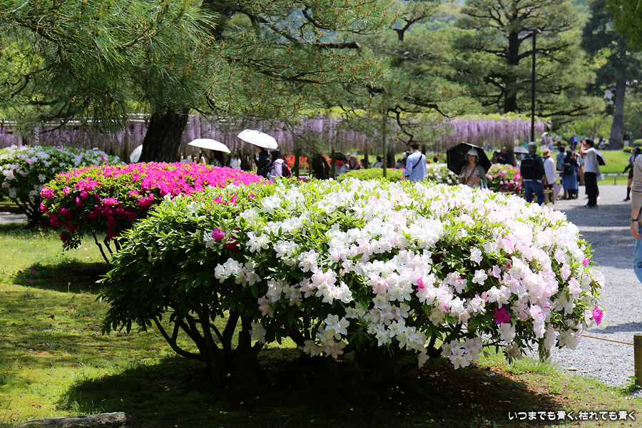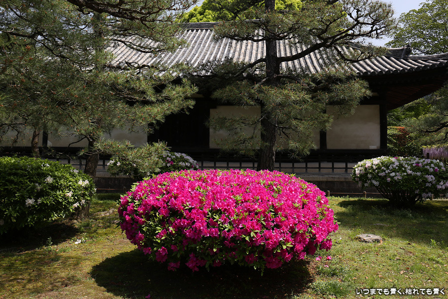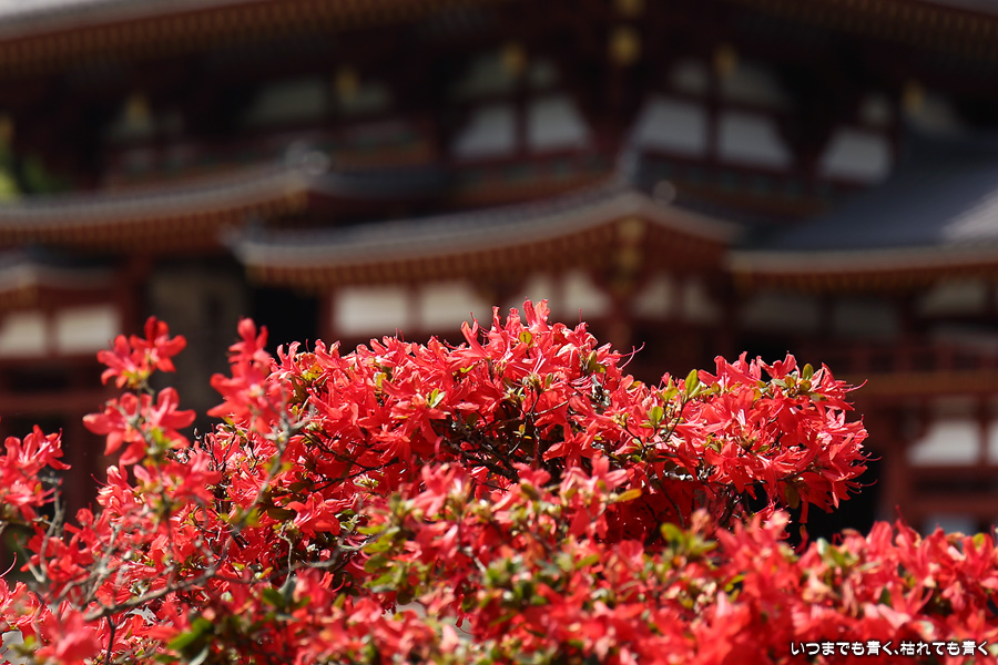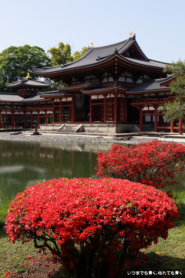 平等院のツツジは、阿宇池の北側にキリシマツツジ、観音堂の横にヒラドツツジがあります。藤棚のほうが人気ですが、ツツジも平等院ならではの構図で楽しめます。