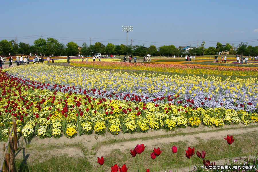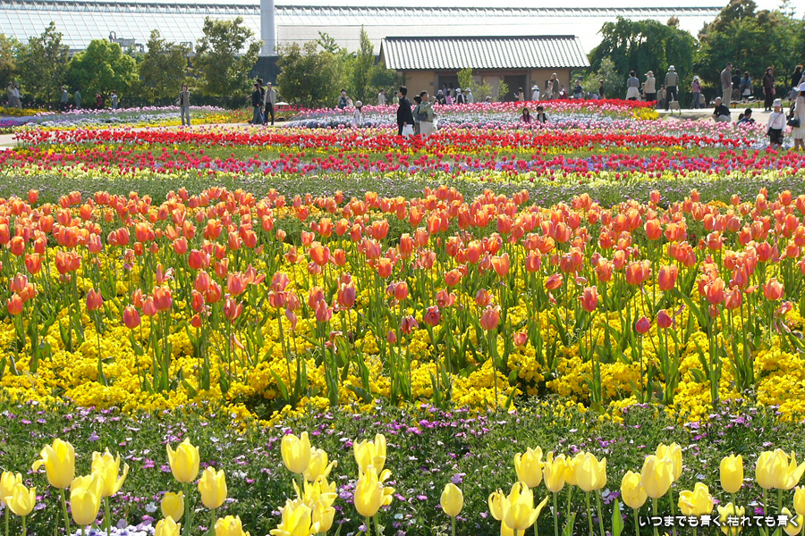 今日はチューリップ畑を見たくて家族、奥さんの両親と「なばなの里」に行ってきました。広大な土地にきれいに花の色をわけて植え込まれた120万株のチューリップ。壮観で見事ではあったのですが、何か違うものも感じてしまいました。私の中のチューリップは、小さな庭に数本、「私はチューリップですよ」と自己主張して目立って咲くのがらしいと思っていましたので、そんな印象を持ってしまいました。