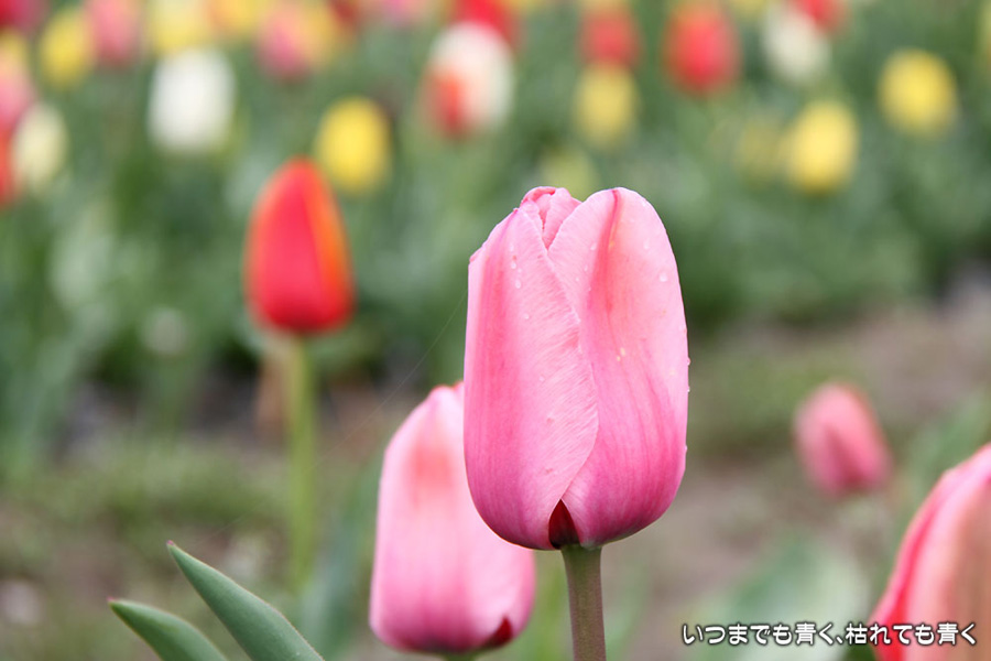 雨があがったので、夕方から奥殿陣屋に行ってきました。水滴の残るチューリップが印象的でしたが、今年の奥殿陣屋のチューリップは数も少ないし花もおとなしめ。つぼみも多いので、まだ時期が早いのかもしれません。そばに咲く菜の花もまだまだこれからという感じ。チューリップで春本番というよりも、桜の散り際でようやく春という感じ。これから若葉の緑が映えて、チューリップの原色が似合うようになるのでしょうね。何度も来ている奥殿陣屋ですが、ここは、2006年のNHK連続テレビ小説「純情きらり」で有森杏子(井川遥)がお見合いをした場所のロケ地だったそうです。初めて知りました。