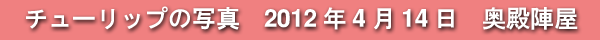 2012年4月14日に撮影した、愛知県岡崎市・奥殿陣屋のチューリップの写真です。