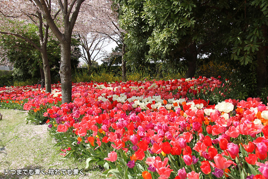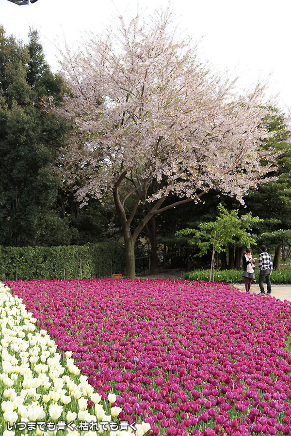 盛大に咲き誇るチューリップを見たくて、「なばなの里」に奥さんと長女と3人で行ってきました。「チューリップまつり」の会場のチューリップは、昨日の「奥殿陣屋」のチューリップとは桁違いで、圧倒されるほどの広さと数と種類です。案内によると、190品種、180万球のチューリップが植えられているとのことです。桜がまだ残っていましたので、桜とチューリップの競演ということで一緒に写真を何枚か撮ったのですが、主役である桜とチューリップを対等の配置で撮った写真は、どちらつかず中途半端な写真になってしまいました。主役級を一緒に写真に撮る場合には、どちらを主役で脇役かを決めた構図でないとダメだなぁということを勉強しました。また、これだけチューリップの数が多いと、どう何を撮れば面白い写真になるのか全然わからずじまいで、なんともセンスのない私です。どちらかというと、長女の写真のほうが構図的には面白いものが多かったりするのです。ちょっと悔しい気もしますが、ちょっと長女を見直したりもしています。掲載写真は、昼間とライトアップされた夜の写真があります。また、Page2の最後の10枚は「チューリップまつり」会場外の園内のチューリップの写真です。