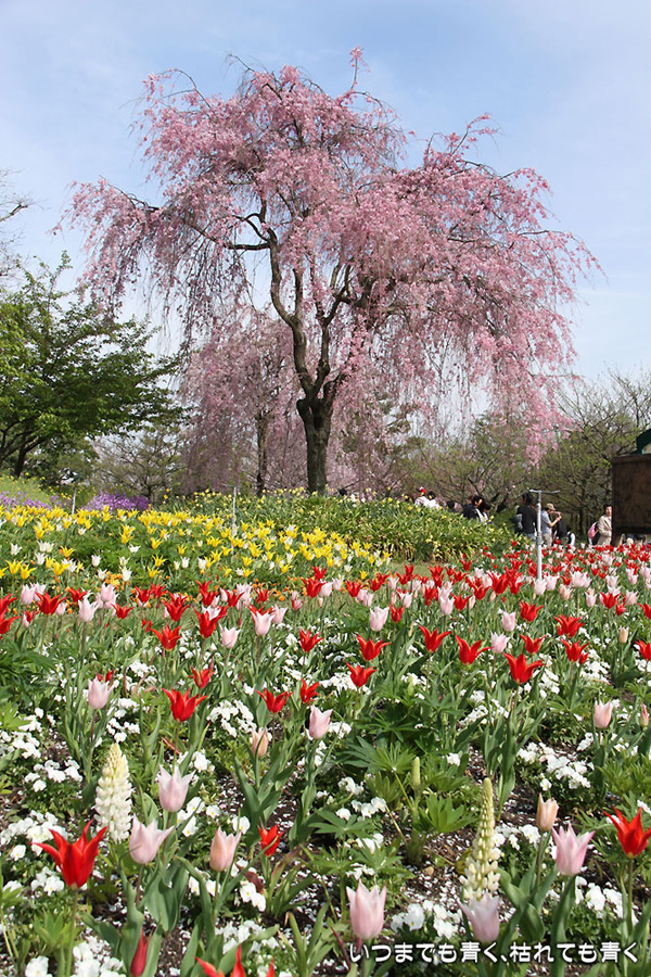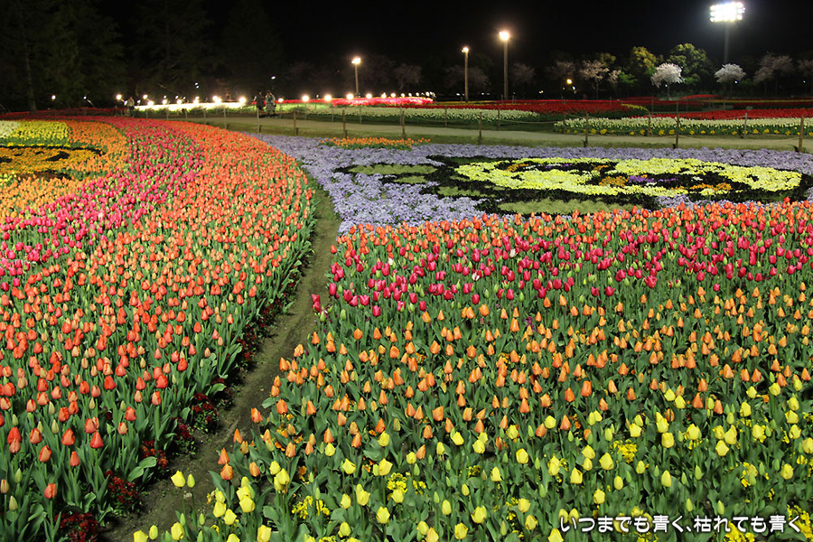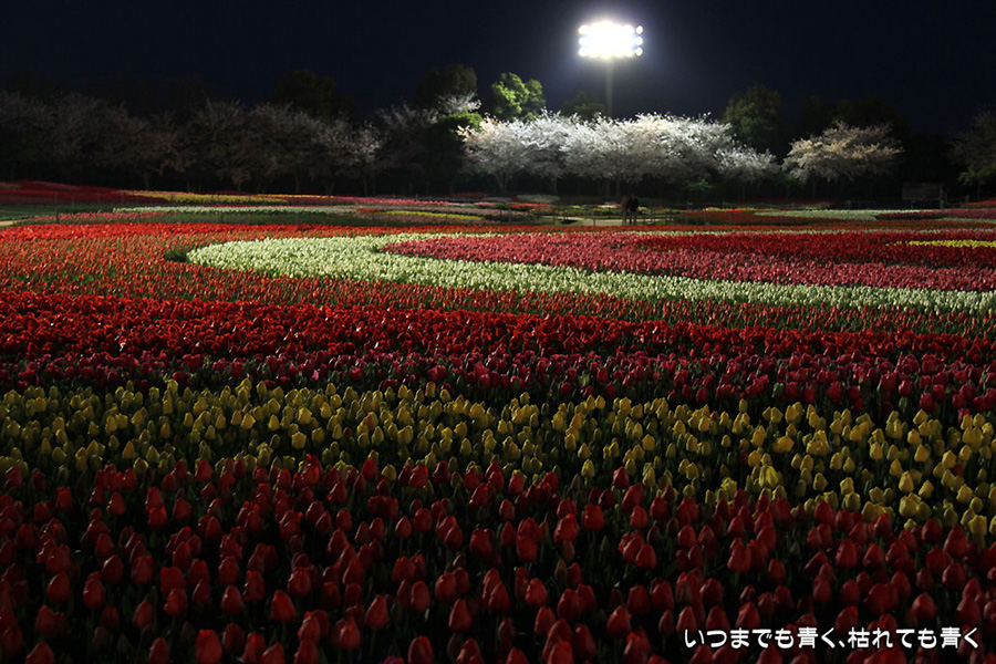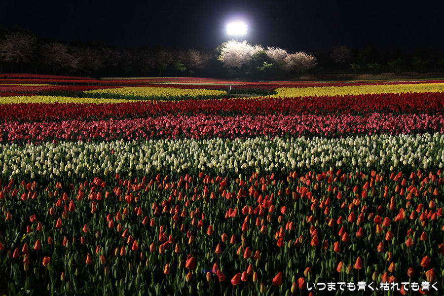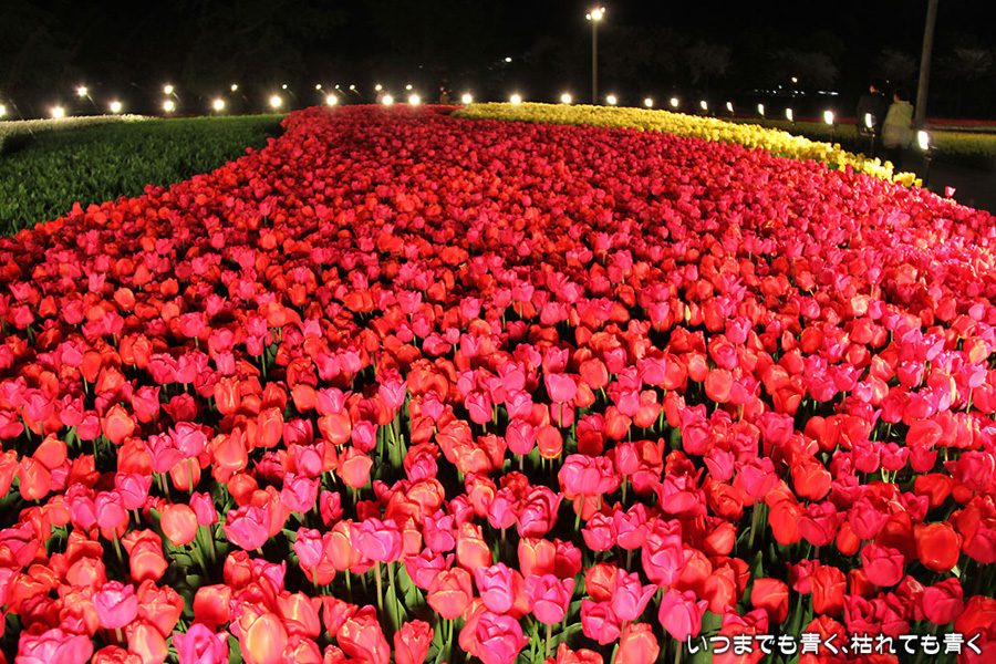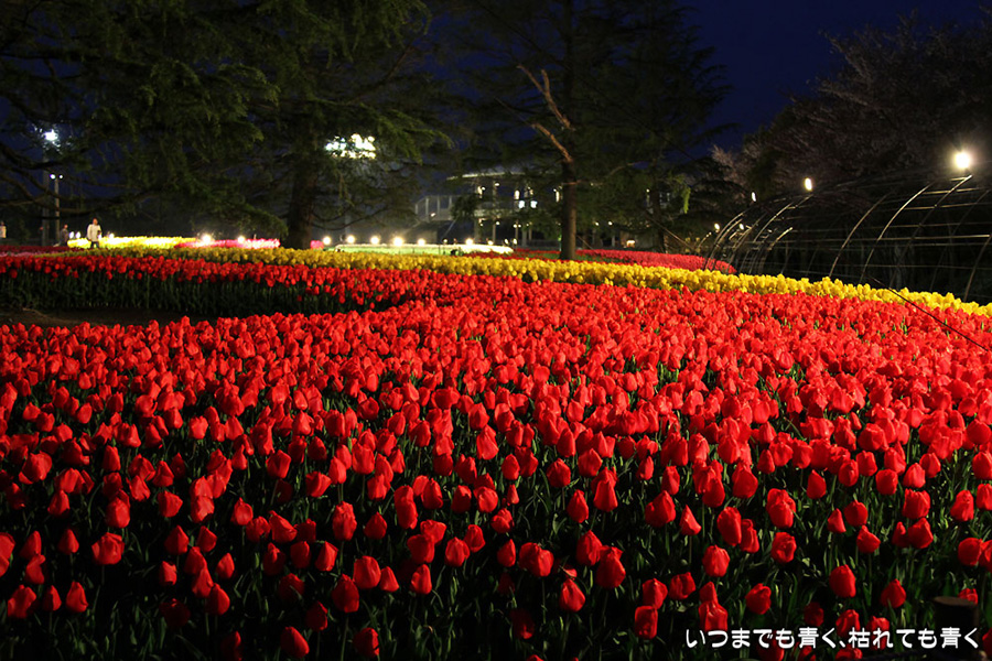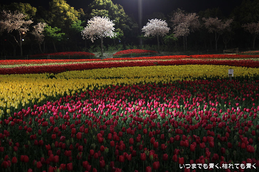 盛大に咲き誇るチューリップを見たくて、「なばなの里」に奥さんと長女と3人で行ってきました。「チューリップまつり」の会場のチューリップは、昨日の「奥殿陣屋」のチューリップとは桁違いで、圧倒されるほどの広さと数と種類です。案内によると、190品種、180万球のチューリップが植えられているとのことです。桜がまだ残っていましたので、桜とチューリップの競演ということで一緒に写真を何枚か撮ったのですが、主役である桜とチューリップを対等の配置で撮った写真は、どちらつかず中途半端な写真になってしまいました。主役級を一緒に写真に撮る場合には、どちらを主役で脇役かを決めた構図でないとダメだなぁということを勉強しました。また、これだけチューリップの数が多いと、どう何を撮れば面白い写真になるのか全然わからずじまいで、なんともセンスのない私です。どちらかというと、長女の写真のほうが構図的には面白いものが多かったりするのです。ちょっと悔しい気もしますが、ちょっと長女を見直したりもしています。掲載写真は、昼間とライトアップされた夜の写真があります。また、Page2の最後の10枚は「チューリップまつり」会場外の園内のチューリップの写真です。