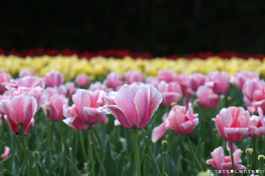 2021年4月11日に撮影した、愛知県岡崎市・奥殿陣屋のチューリップの写真です。