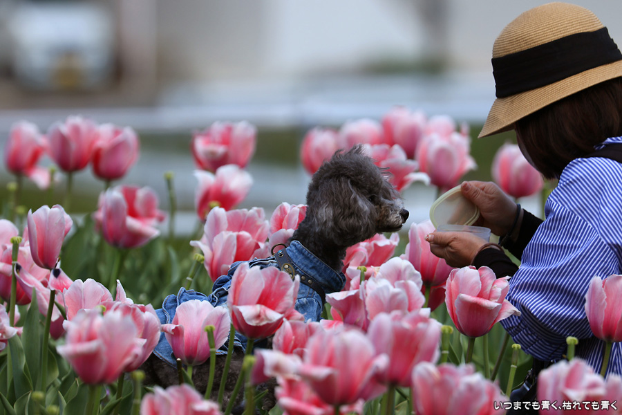 久しぶりの奥殿陣屋のチューリップ畑を見てきました。花びらを落としているものが多く、残念ながら見ごろは過ぎてしまっていました。ワンコと奥殿陣屋との写真展があるようで、愛犬を連れての写真撮影の人が多かったです。