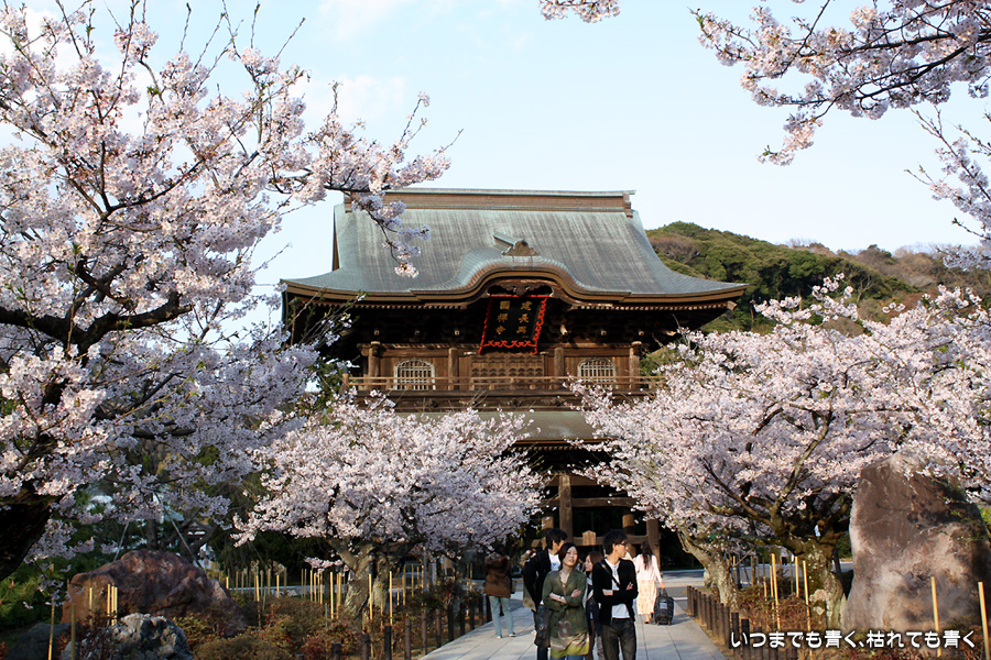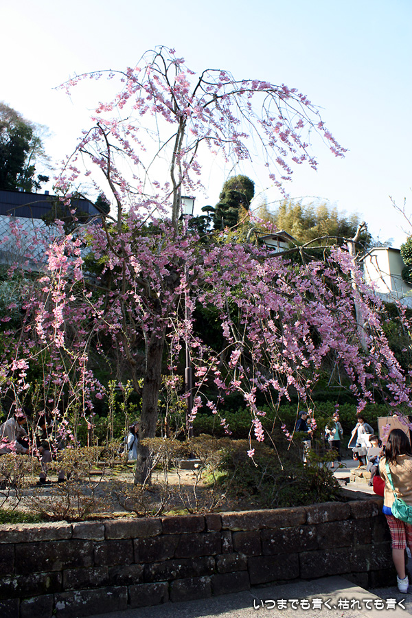 建長寺は、北鎌倉と鎌倉のちょうど真ん中にありますので、今回はこの機会に初めて北鎌倉から鎌倉まで歩いてみることにしました。建長寺は、臨済宗建長寺派の大本山で鎌倉五山第一位のお寺です。鎌倉学園中学校・高等学校を運営しており、桑田佳祐がその学校の出身であることは有名です。けんちん汁のいわれのお寺でもあります。総門と立派な三門の間には美しい桜並木があります。みんな満開でとても綺麗です。建長寺の境内は全体的に非常に美しく保たれており、どこで写真を撮っても絵になります。枝垂桜はまだ蕾も多かったですが、可憐な美しさを感じさせてくれました。方丈の中にはいると庭園を眺めることができます。板の廊下に座ってぼやっと庭園を眺めていると心が落ち着きます。