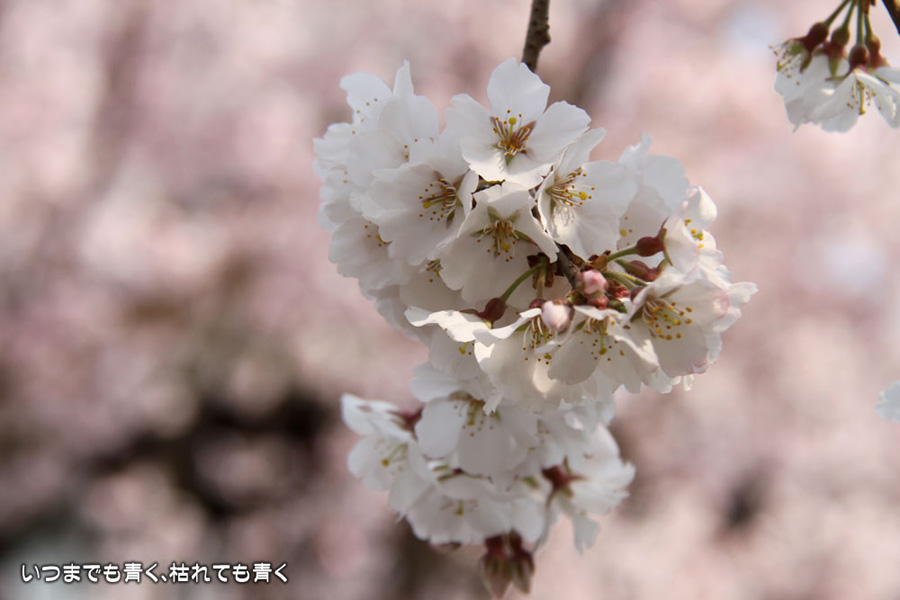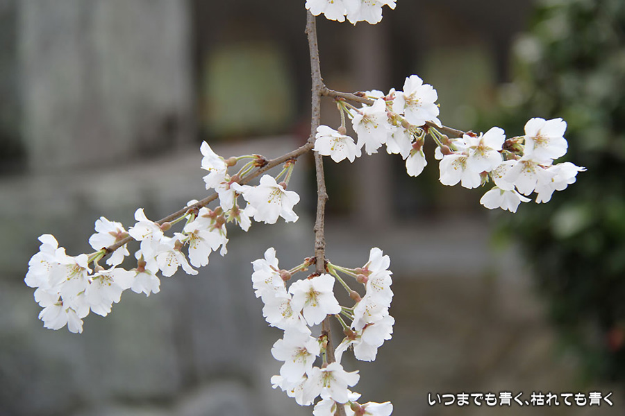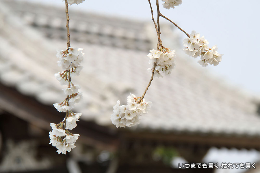 今日は、買ったばかりのカメラ、EOS7Dを持って西尾市にある源空院というお寺の枝垂れ桜をひとりで見に行ってきました。源空院は、西浅井城主だった松平康孝の菩提寺だそうです。松平康孝の父は、徳川家康の曾祖父である松平信忠になるとのことで、この地域には徳川家ゆかりのお寺が多いのだなぁということを今更ながらですが感じています。このお寺の枝垂れ桜は、樹齢250年といわれるものを含めて3本の古木があり、このあたりでは枝垂れ桜で有名なお寺です。お寺は、車同士がやっとすれ違えるかどうかという細い道に面した狭い場所にありますが、とても綺麗に整備されており、枝垂れ桜の季節ということで境内ではぜんざいやおだんごを販売していたりしていて、訪れる人もひっきりなしで賑やかです。枝垂れ桜はちょうど見ごろで見事です。白くてしっかりとしたたくさんの花が、上から見事に垂れています。それほど広くない境内なのにとても開放感を感じますし、落ち着いた気持ちになります。枝垂れ桜だけではなく、本堂の裏手や脇の高台にはいろんな花が植えられていて、プチ散策を楽しめます。高台から眺める枝垂れ桜は壮観でした。