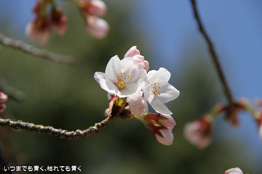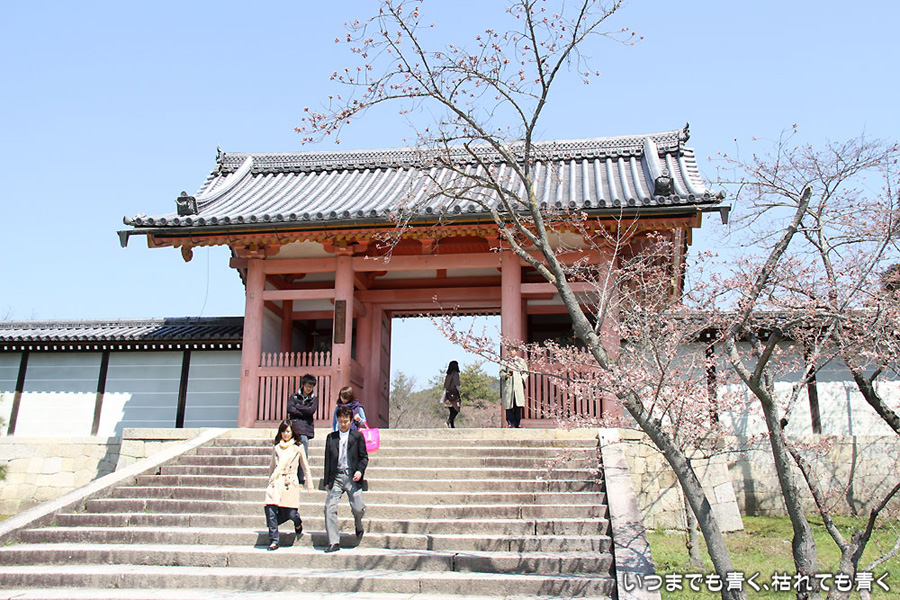 御室桜の時期はもっと後だということはわかっていたのですが、ソメイヨシノはもう咲いているだろうと思ってやってきました。駐車場にクルマを止めて東門からはいると、参道に桜の木が数本。つぼみが多いもののそれなりに咲いていましたので、五重塔のあたりも桜の花を期待して行ったのですが、結局この参道の桜が一番開花が早い桜でした。桜の花の中の五重塔を見たかったのですが、残念ながら見ることはできませんでした。できれば、御室桜の時期にもう一度来たいですね。