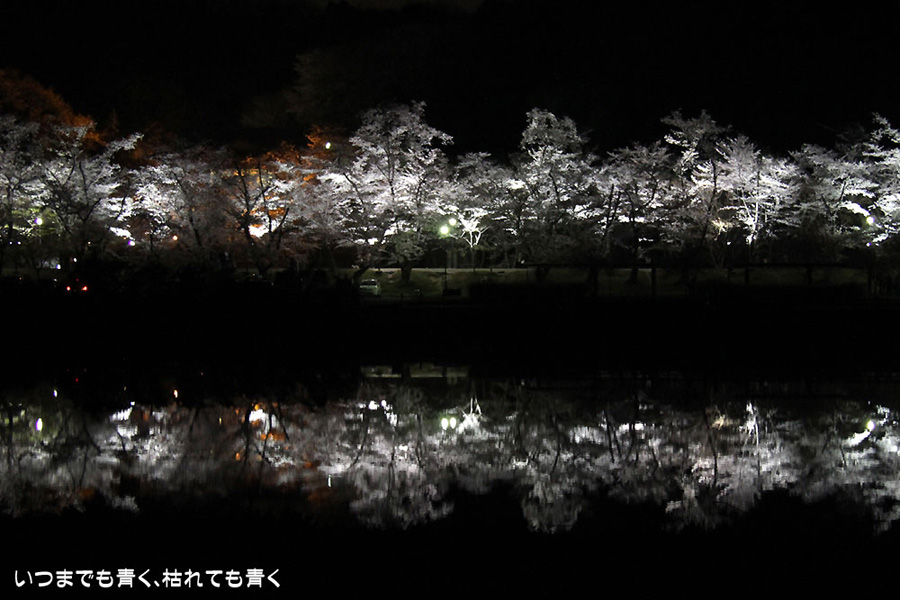 「奥山田しだれ桜」の次に、水源公園の桜並木にでかけてきました。ここは地元では花見の定番の場所で、矢作川沿いにある約500本の桜並木です。桜並木を三人で歩いたあと、私は矢作川の対岸まで歩いていき、ライトアップされた桜が矢作川の水面に映る姿をカメラにおさめてきました。