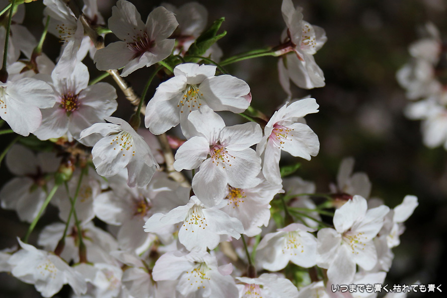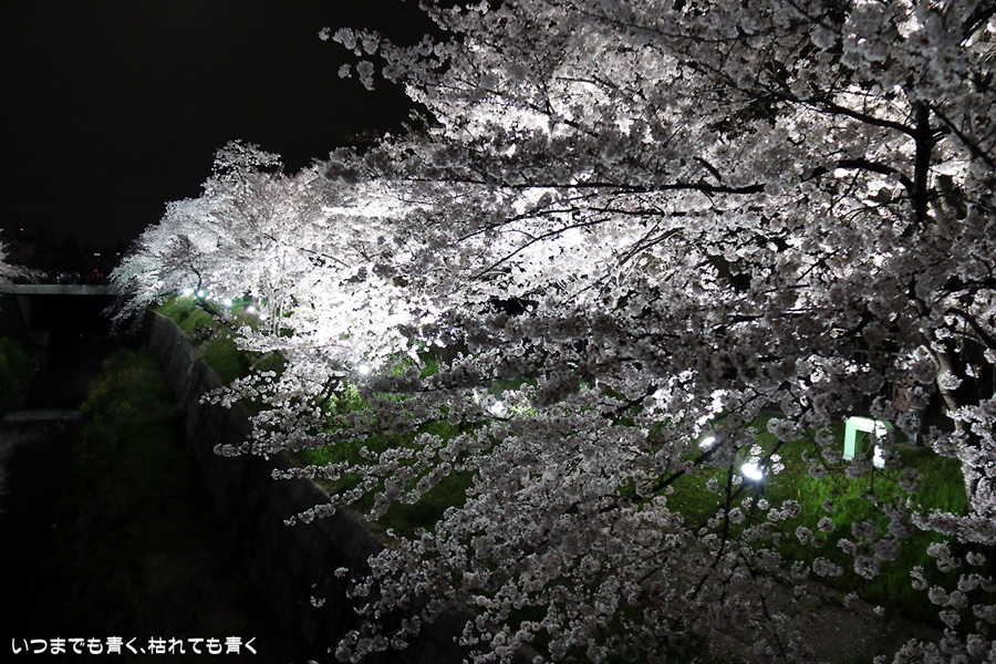 翌日から雨が続くという予報なので、この日で今年の桜は見納めかもしれないと思って、仕事が終わってから瑞穂陸上競技場の近くにある山崎川の桜のライトアップを見てきました。何度見に来ても、桜と鼎小橋(かなえこはし)は絵になりますね。露出をわざとプラス側にふって白飛び承知で白く輝くような桜に仕上げましたが、いかがでしょう。