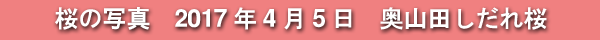2017年4月5日に訪れた、岡崎市・奥山田のしだれ桜の写真です。