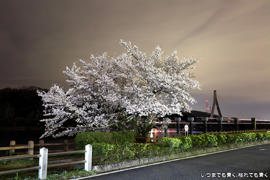 2017年4月10日に訪れた、豊田市・水源公園のの夜桜の写真です。